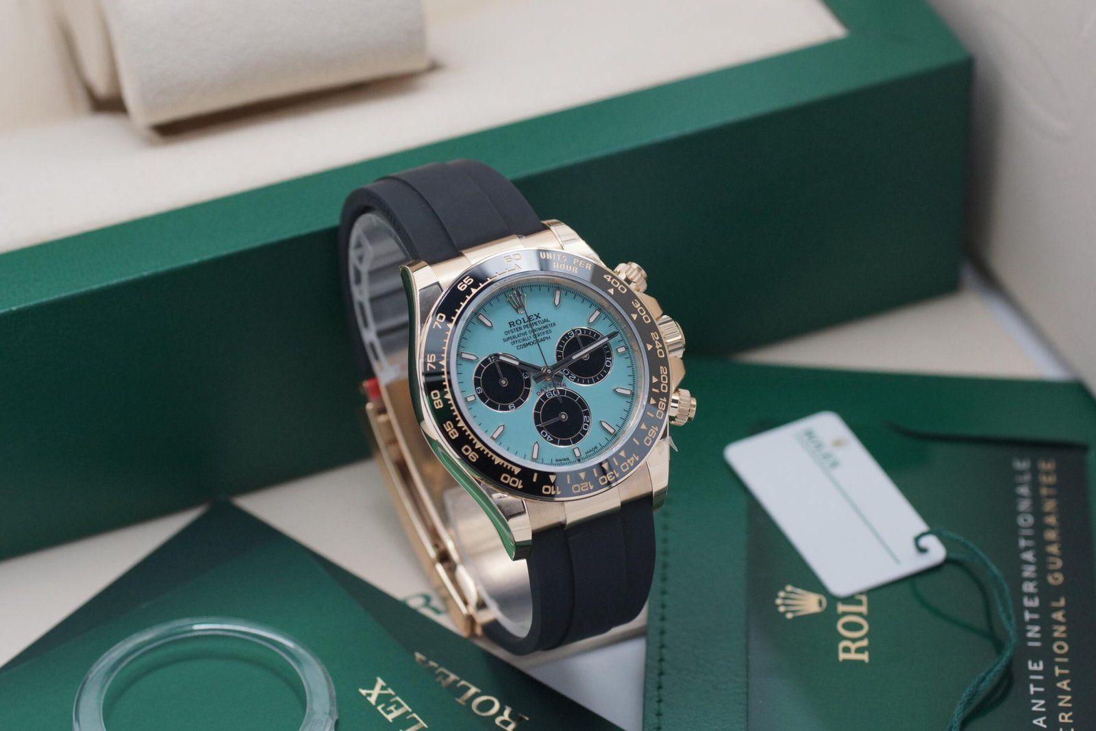 Rolex Daytona Turquesa 126518LN Conjunto Completo 2025 NOVO Ouro Amarelo Oyster