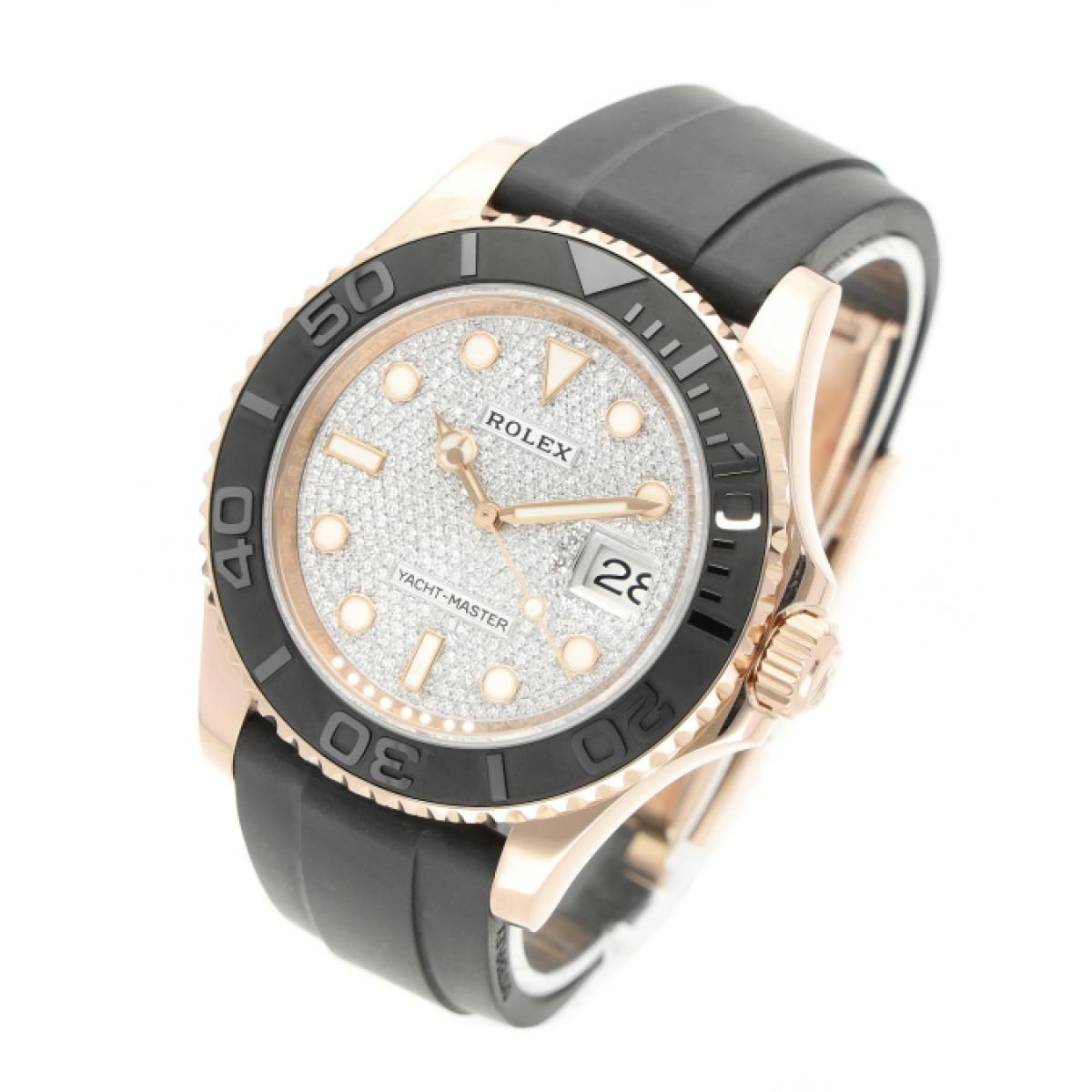 Rolex Yacht-Master de 2020 com caixa de ouro rosa de 40 mm e fecho dobrável. Este relógio masculino da Rolex está em muito bom estado.