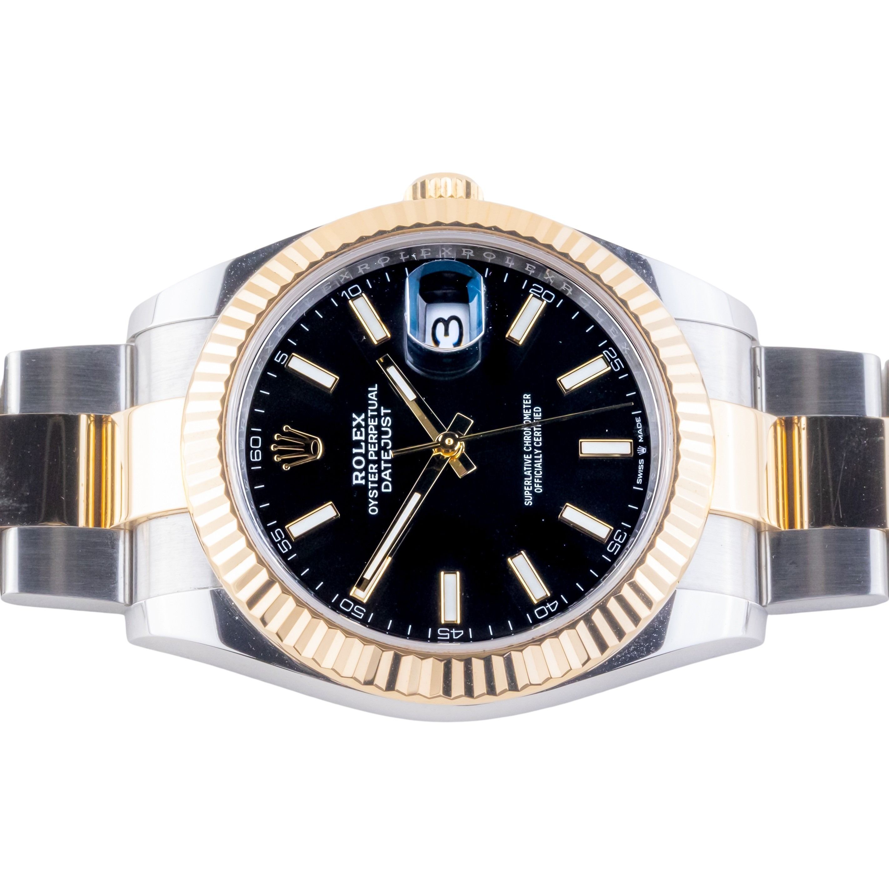 Rolex Oyster Perpetual Datejust reference 126333 from 2023 including full set. The Datejust 126333 measures a 41mm gold and stainless steel case, a two-tone Jubilee bracelet with crownclasp and fluted 18k gold bezel. This Datejust 126333 features an automatic movement caliber 3235 with quickset date function, a scratch resistance sapphire crystal and a black dial.Every watch sold by Langedyk Vintage Watches is included with a LVW watch box, Authenticity report and free worldwide (insured) shipment. In addition, every pre-owned watch is offered with our 12-month warranty from the date of purchase.