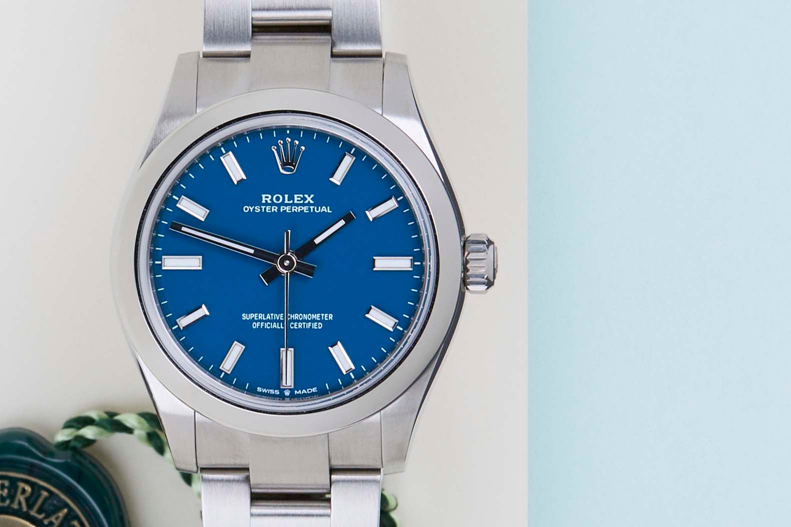 New & Unworn | Full Set | International Rolex Warranty Until September 2030.The Rolex Oyster Perpetual was first introduced by Rolex in the 1930s. It is characterized by its water-resistant Oyster case and self-winding Perpetual movement. The Rolex Oyster Perpetual a simple, yet elegant timepiece that is suitable for both casual and formal wear.This Rolex Oyster Perpetual 31 'Blue Dial' was sold for the first time in September 2025.The watch is fully made out of stainless steel. Rolex uses 904L in its steel watches, which is an extremely resistant and highly polishable superalloy.This Rolex Oyster Perpetual 31 is in New & Unworn condition and comes with the original Rolex Warranty Card and box. Furthermore, the watch still has Worldwide Rolex Warranty until September 2030.