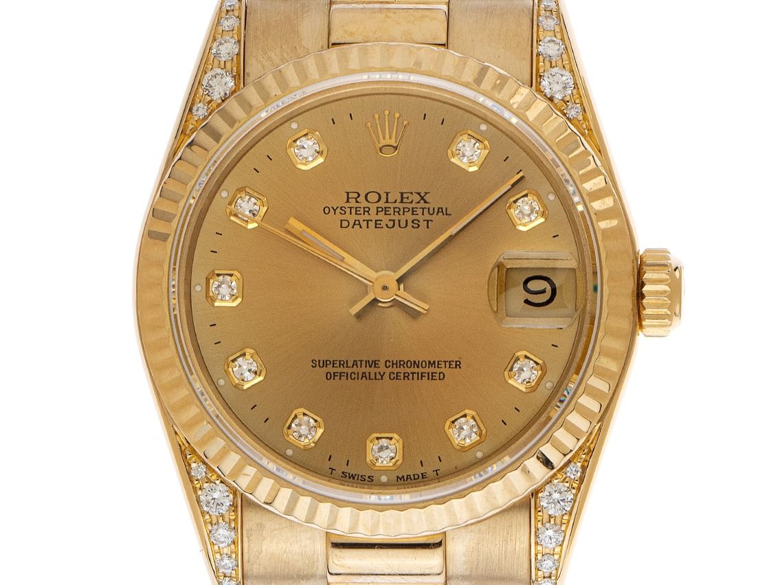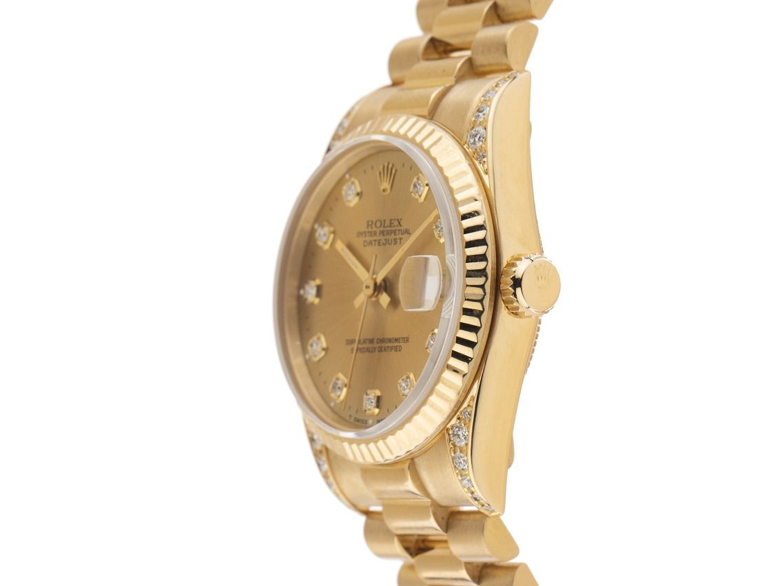 Rolex Datejust Medium 18kt Ouro Amarelo Diamantes Automático Pulseira Presidente