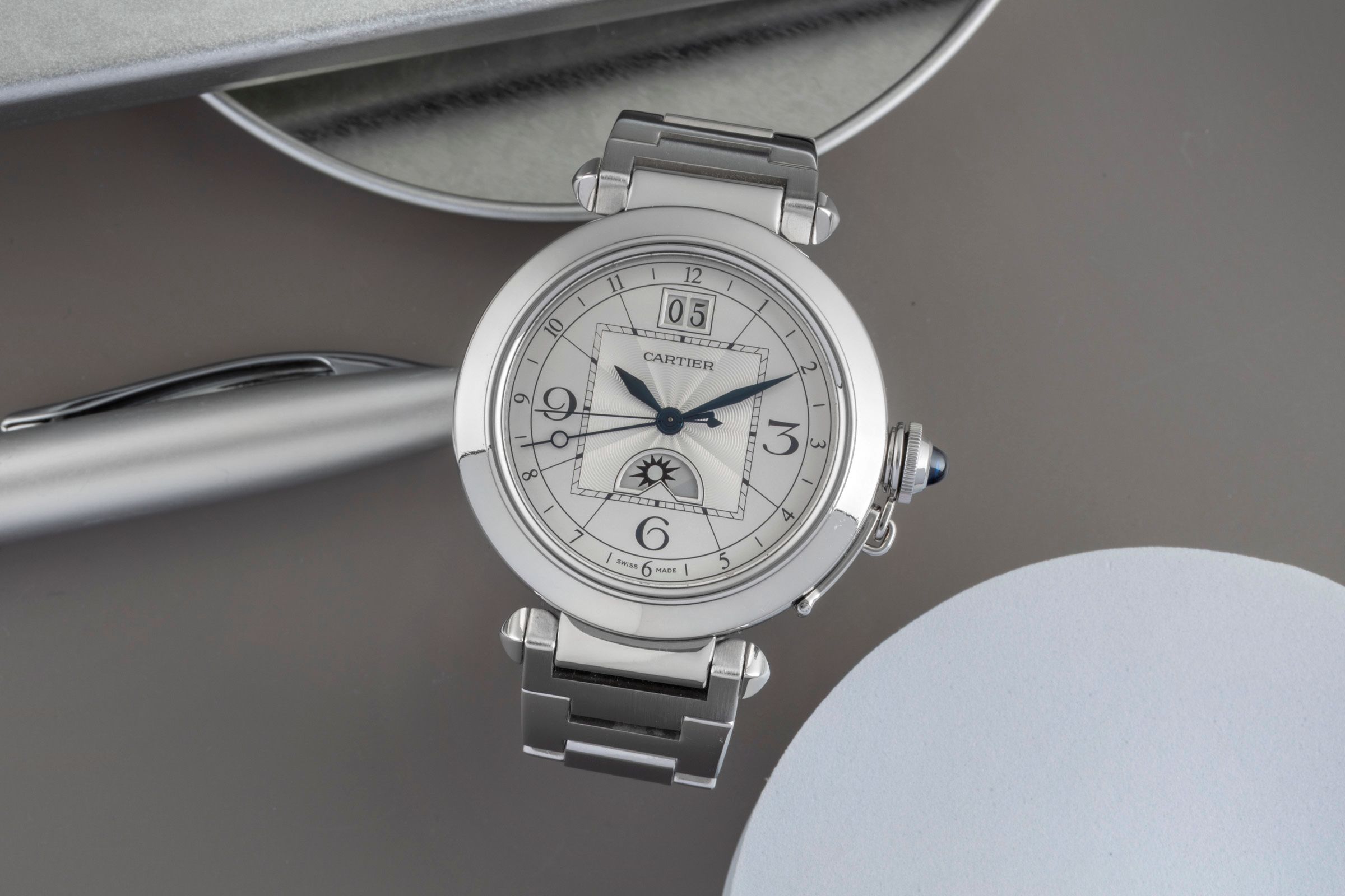 Alternative title: Cartier W31093M7 - Pasha; Cartier Pasha XL Automatik Night & Day Edelstahl Herrenuhr Ref. W31093M7 [2507309]