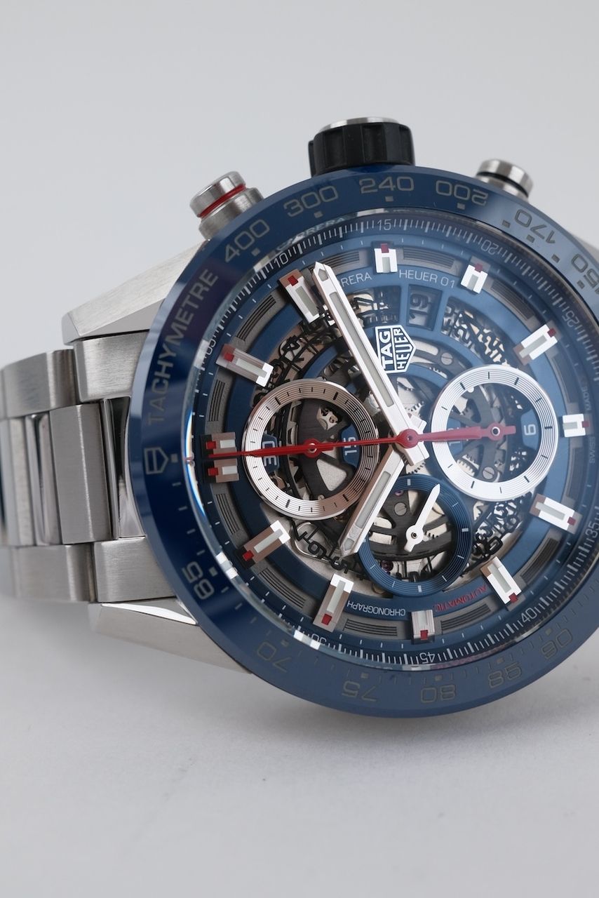 TAG Heuer Carrera Calibre HEUER 01 Tag Heuer Carrera Calibre HEUER 01 Chronograph CAR201T.BA0766 Blue Skeleton Dial SERVICED incl. TH Blue Strap & Clasp