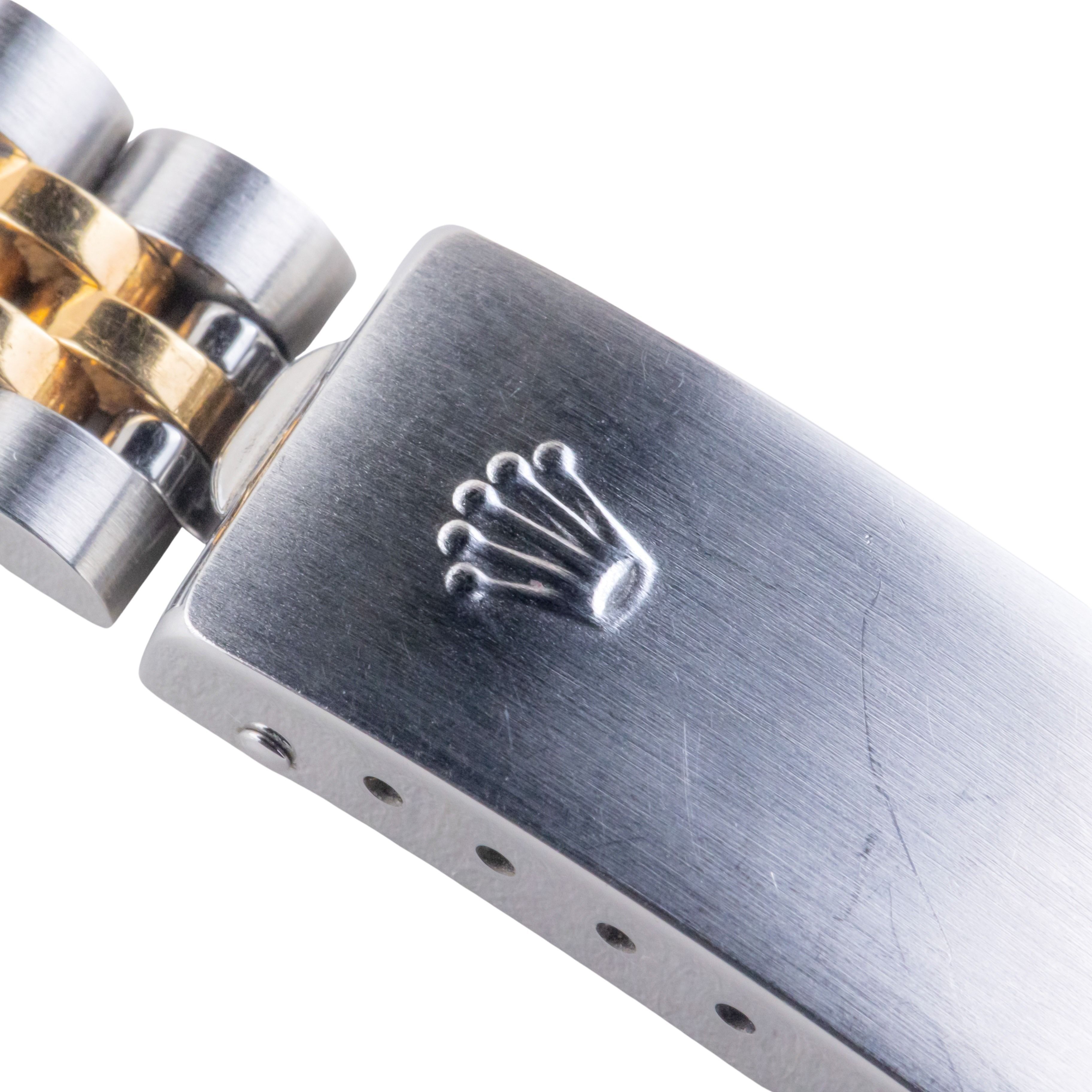 Rolex Oyster Perpetual Lady-Datejust referência 69173 de 1991, incluindo conjunto completo. A Lady-Datejust 69173 possui uma caixa de 26mm em ouro e aço inoxidável, bracelete jubilee bicolor e luneta estriada em ouro 14k. Esta Lady-Datejust 69173 apresenta um movimento automático calibre 2135 com função de data rápida, um cristal de safira resistente a riscos e um mostrador champanhe.