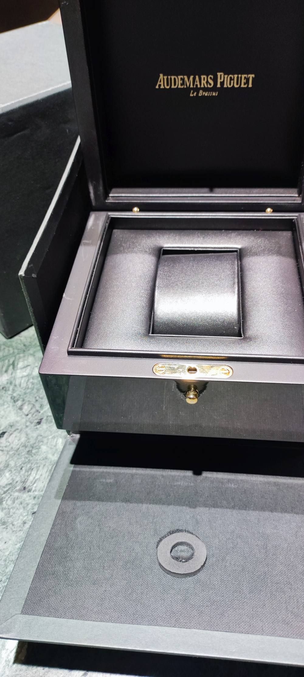 O relógio está em muito bom estado (veja as fotos anexadas para mais detalhes) CONJUNTO COMPLETO com a caixa original da Audemars Piguet, folhetos e garantia. A garantia foi ativada por um revendedor oficial em 2015.