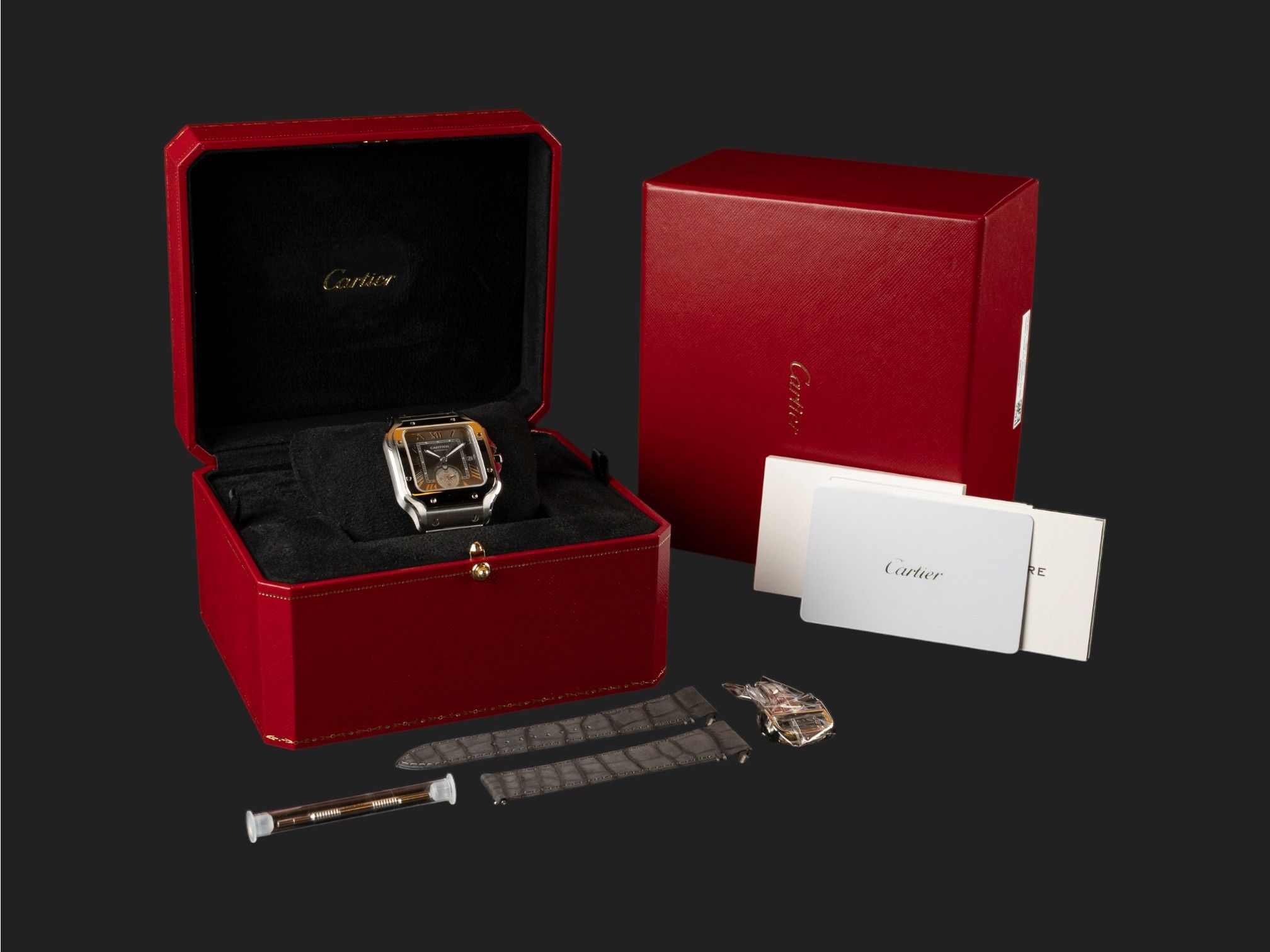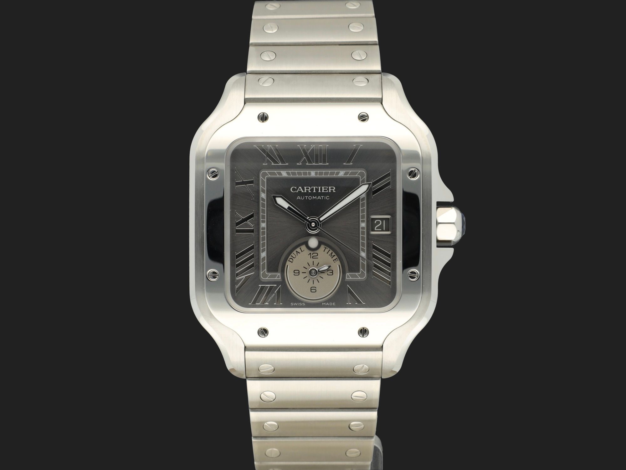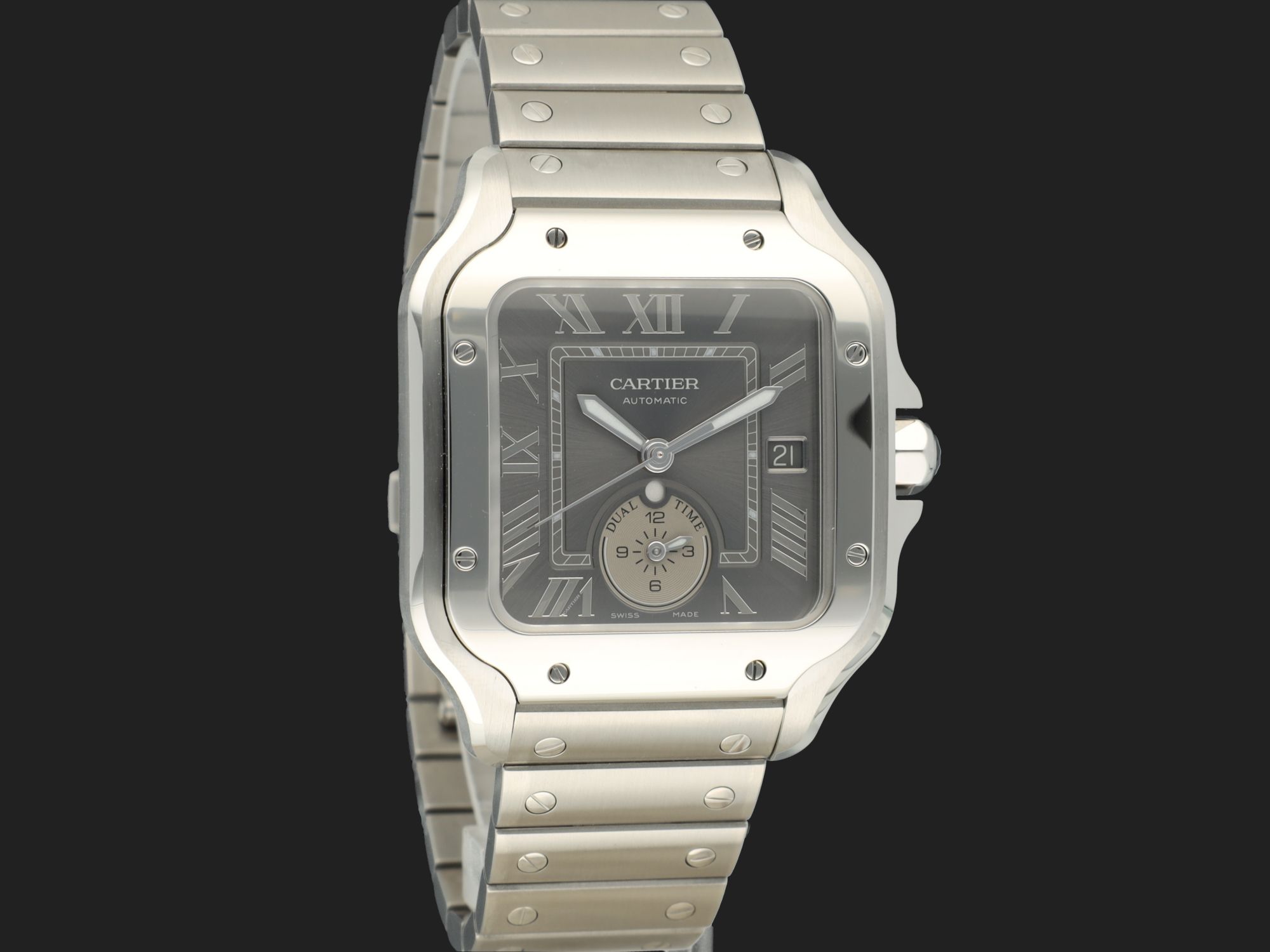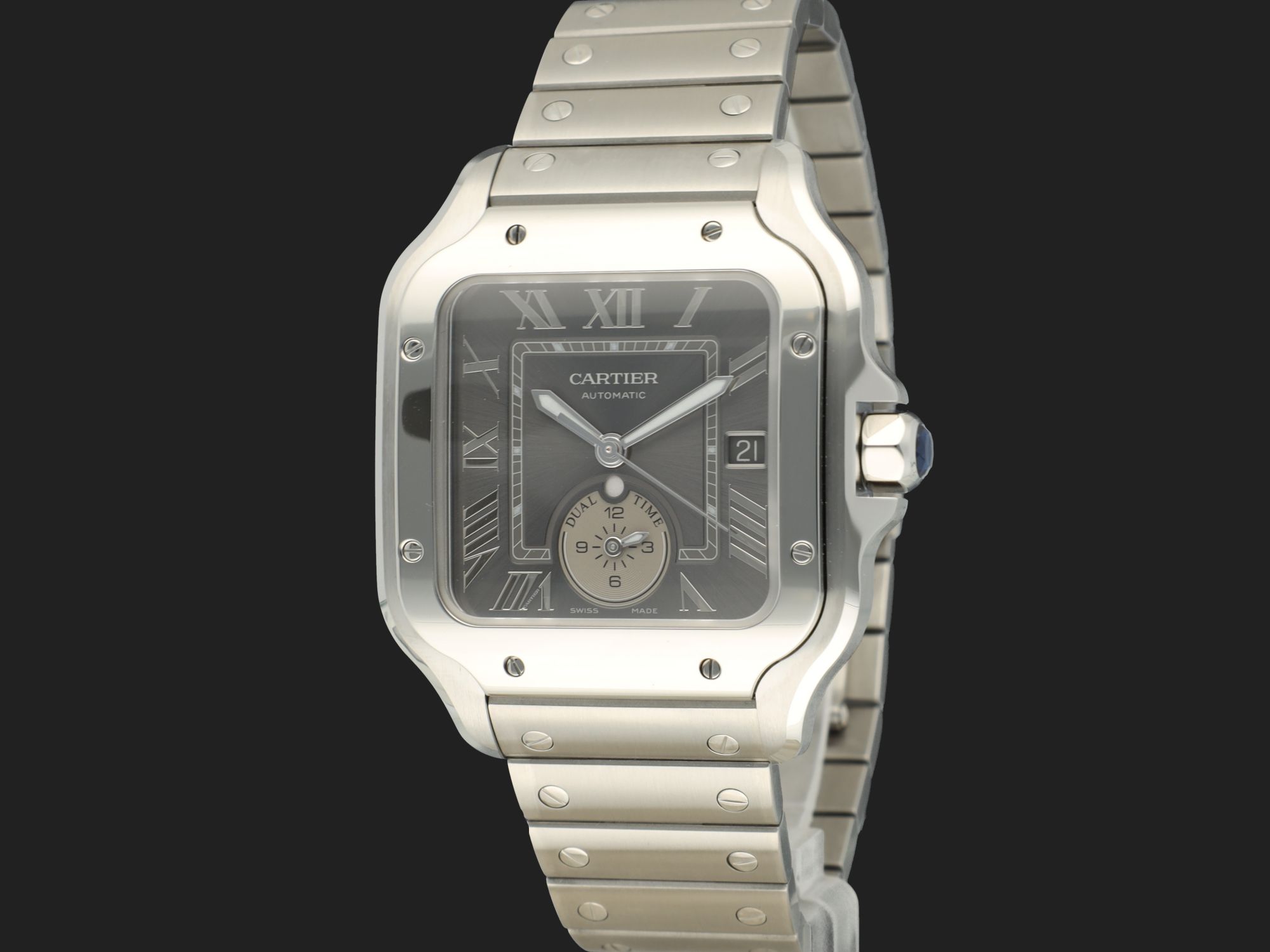 Cartier Santos Santos Large Dual Time Grey Roman Dial WSSA0076 NEW