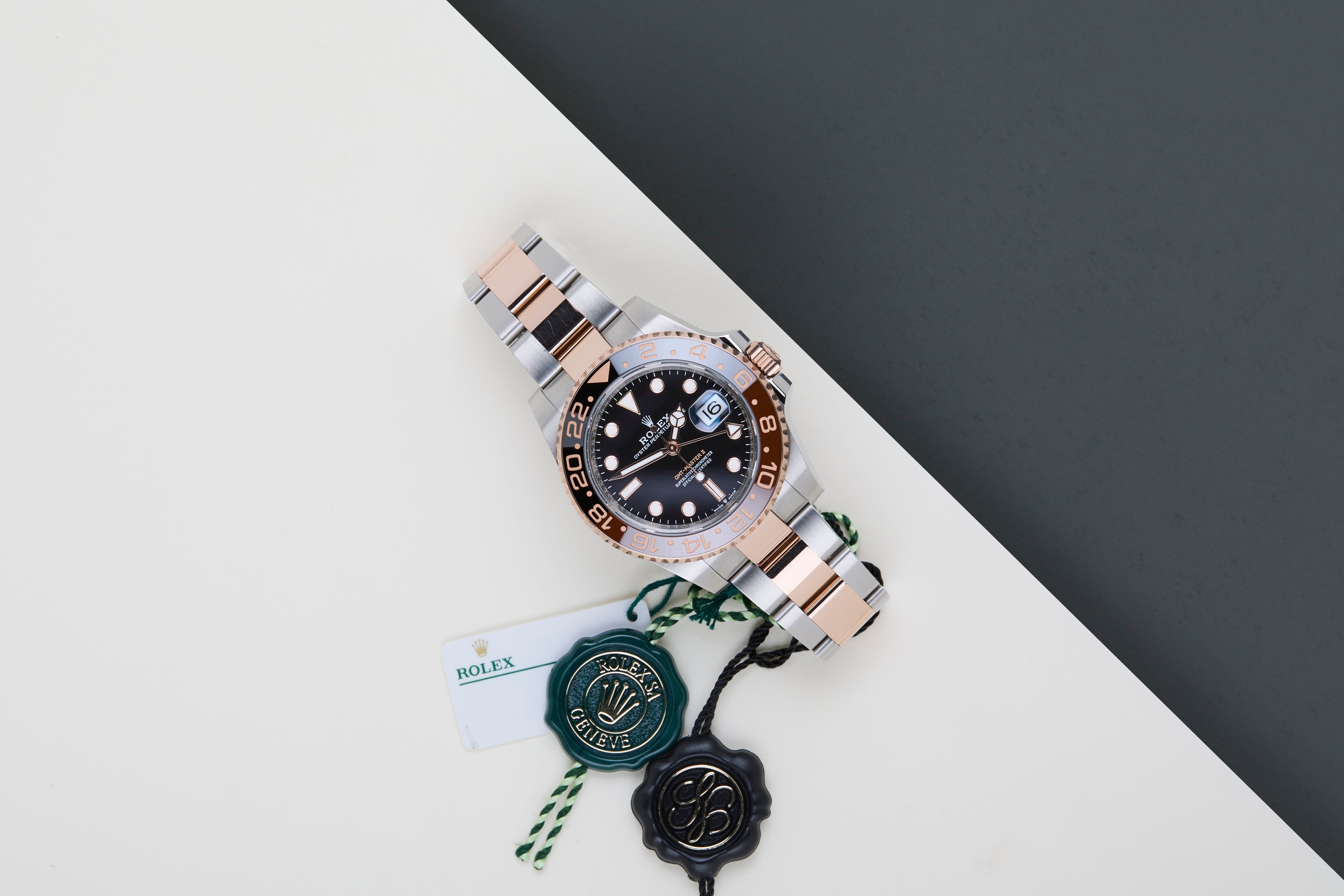Full Set | Unpolished Condition | International Rolex Warranty until April 2030 | Including Rolex White TagThe Rolex GMT was originally designed in collaboration with Pan American Airways and issued to their crews on long-haul flights. The dual time zone can track local and home time, which is a useful tool for pilots and those who are traveling a lot across different time zones.The reference 126711 is the second generation of the GMT-Master II with a Ceramic Bezel. The material to make this bezel is called 'Cerachrom', which was developed completely in-house by Rolex to be highly scratch-resistant.This GMT is equipped with the Chocolate and Black Bezel, which can be derived from the reference 126711CHNR, Lunette Chocolat Noire. The GMT-Master II 'Rooterbeer' is made out of a combination of 18K Rose Gold and stainless steel and is fitted with an Oyster bracelet, which is equipped with the Easylink. This extension, allows the wearer to either extend or shorten the bracelet by 5 millimeters, improving the wearability and usability of the watch.This Rolex GMT-Master II is in Unpolished condition and comes with the original Rolex Warranty Card and Box. Furthermore, the watch still has International Rolex Warranty until April 2030.