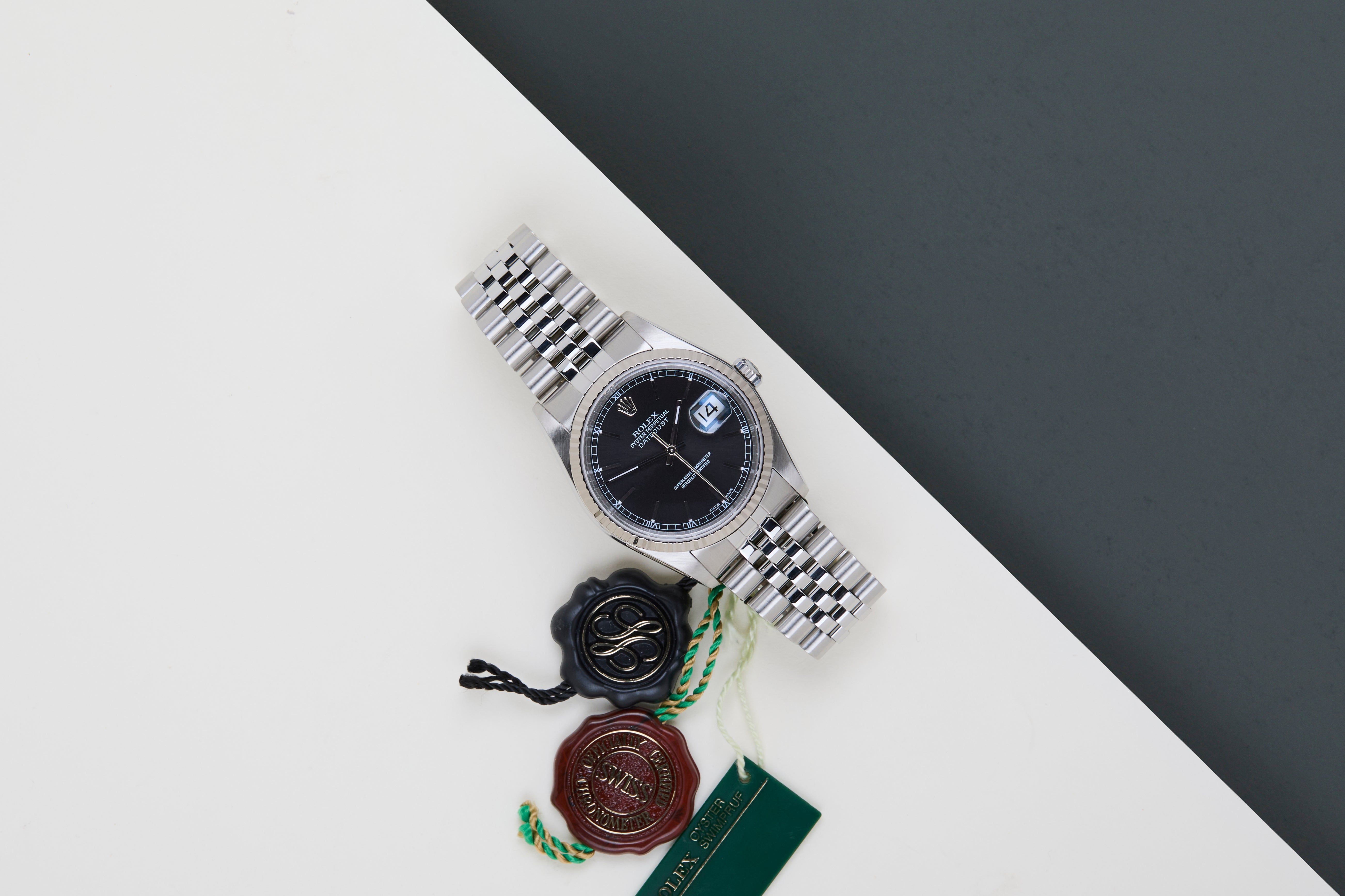 Full Set | Including Rolex Service Card From February 2025 | International Rolex Warranty Until February 2027 | Including Green Rolex Tag | | Bracelet Code 62510H | Clasp Code CL5 | Endlink Code 555B Rolex introduced the original Datejust in 1945 to celebrate the company's 40th anniversary. Due to the various case sizes and materials, the Datejust has been ingrained in Rolex's history and remains incredibly popular for 75 years.This Rolex Datejust 'Black Dial - Jubilee' was sold for the first time in February 2005.It is made out of a combination of 18ct. White Gold and stainless steel and is fitted with a Jubilee bracelet.This Rolex Datejust 36 is in Mint condition and comes with the original Rolex Warranty Papers and Box. Furthermore, the watch comes with International Rolex Warranty until February 2027.