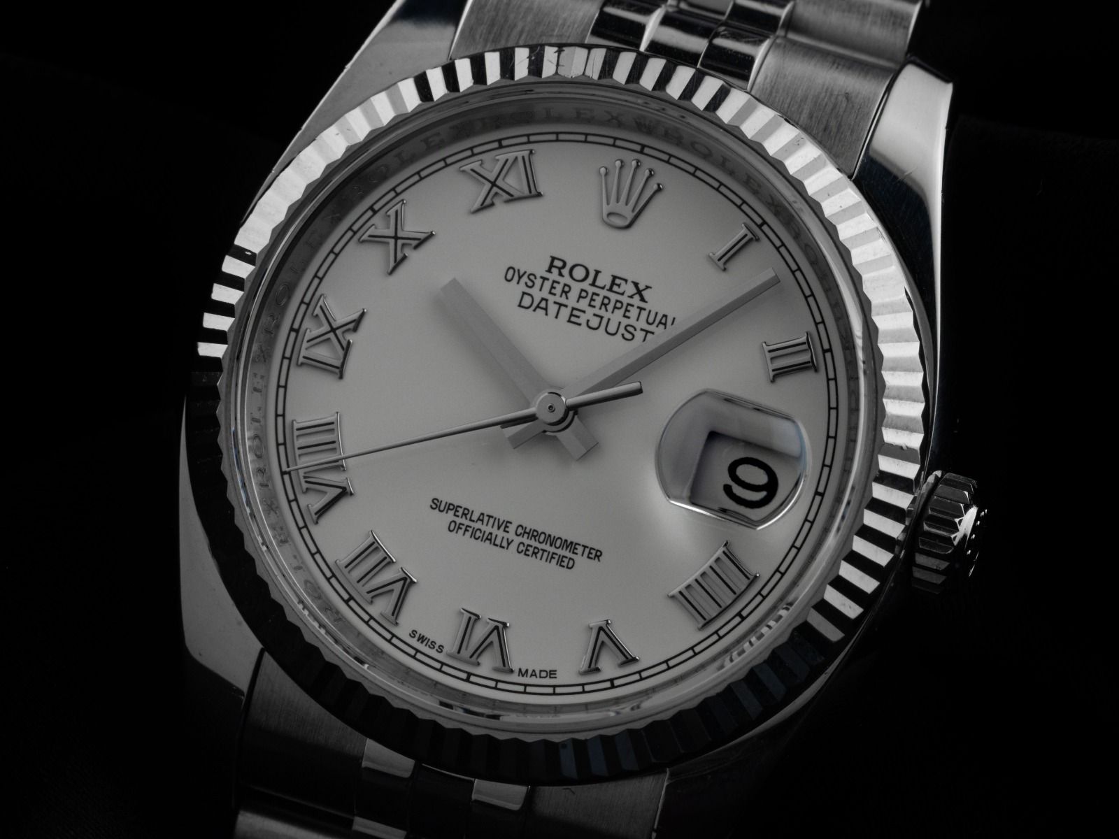 Rolex Datejust Stahl 18kt Weißgold Automatik Armband JubiléGehäuse Edelstahl poliert und satiniert, Gehäusedurchmesser ohne Krone 36mm, Gehäusehöhe 11,6mm. Lünette 18kt Weißgold geriffelt und poliert. Armband Jubilé Edelstahl poliert und satiniert, verdeckte Crownclasp-Faltschließe Edelstahl mit Hersteller-Logo. Zifferblatt weiß mit aufgesetzten weißgoldenen römischen Ziffern und weißgoldenen Zeigern. Uhrwerk Automatik, Chronometer mit Zeugnis, Rolex Manufakturkaliber 3135 mit 31 Edelsteinen. Anzeige von Stunde, Minute und Sekunde über Zeiger aus der Mitte mit Sekundenstopp zur sekundengenauen Einstellung der Uhrzeit, Datumsanzeige mit Schnellverstellung unter Glaslupe bei 3 Uhr. Saphirglas kratzfest. Krone verschraubbar mit Hersteller-Logo. Boden Edelstahl verschraubt. Gewicht der Uhr inklusive Armband 114g, Länge des Armbandes inklusive Gehäuse 165mm. Referenznummer: 116234, Gehäusenummer: G296XXX, ID: P2317149000126H-12800, Artikelnummer: 10000084336. Mit Gangkontrolle und kompletter äußerlicher Aufarbeitung von Januar 2026. Original Rolex Box und Garantie Papiere von Dezember 2012, LC 100 Germany EU sowie Beschreibung, Ledermäppchen, Rolex Chronometer-Siegel und Watchregister Auszug von Januar 2026, The Watch Register Zertifikat / ohne Eintrag (Internationale Datenbank für verlorene oder gestohlene Uhren), inklusive Erstkaufrechnung, Full Set. Superschnäppchen, Kapitalanlage mit Wertsteigerungspotential, extrem seltenes Sammlerstück, fast nicht getragen. Wie Neu. Lieferzeit sofort.