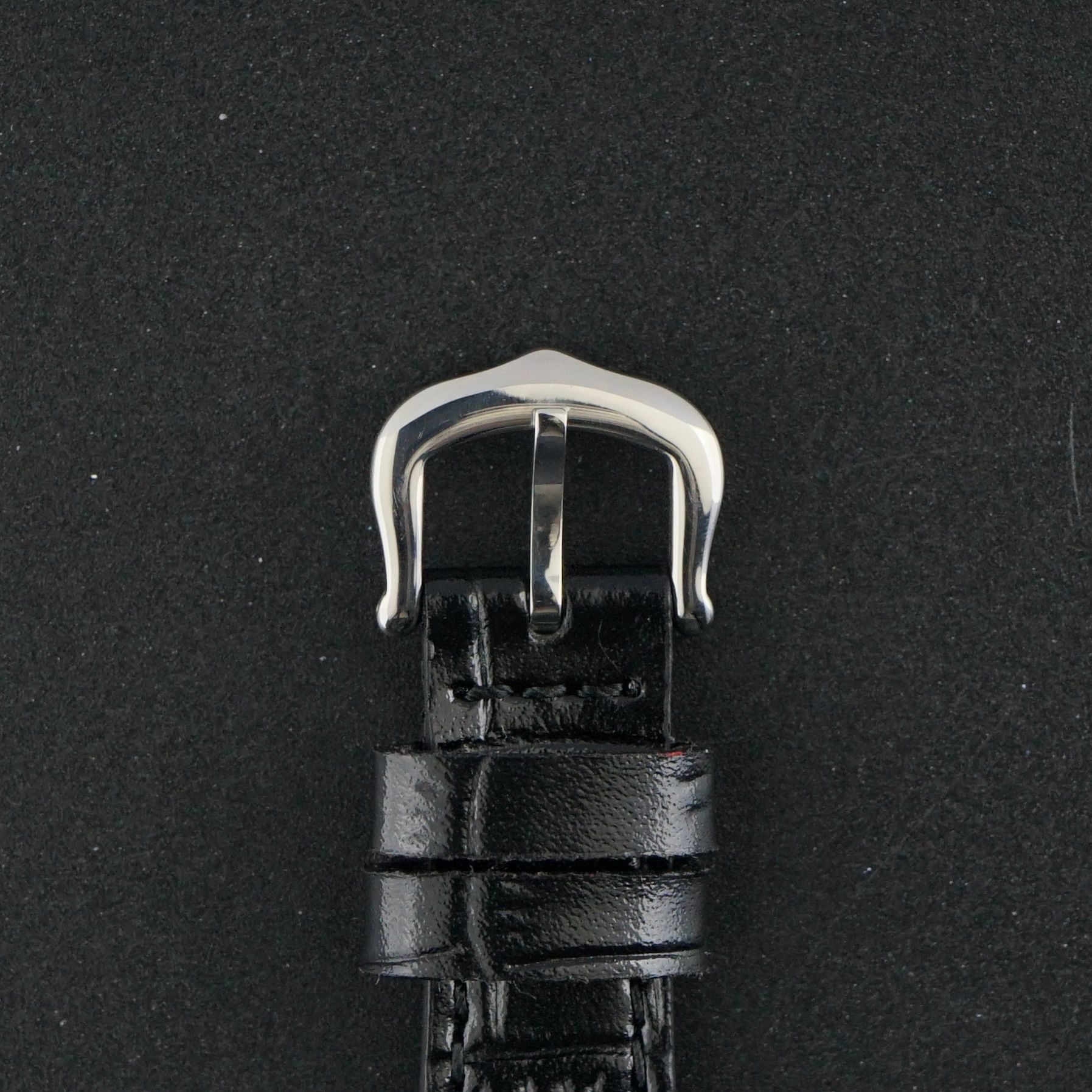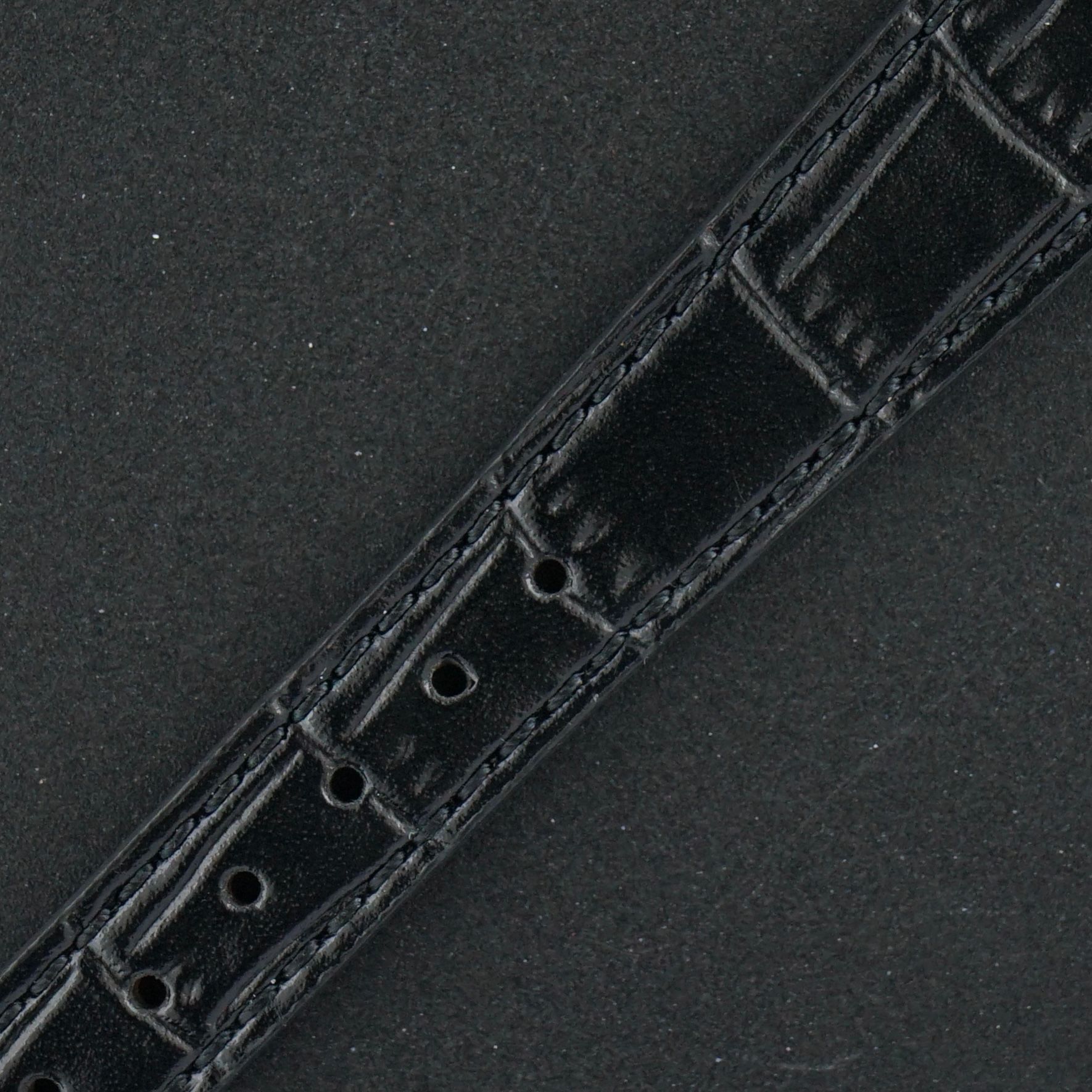 A black leather strap with a crocodile grain. (Fits a 10 to 18cm wrist)