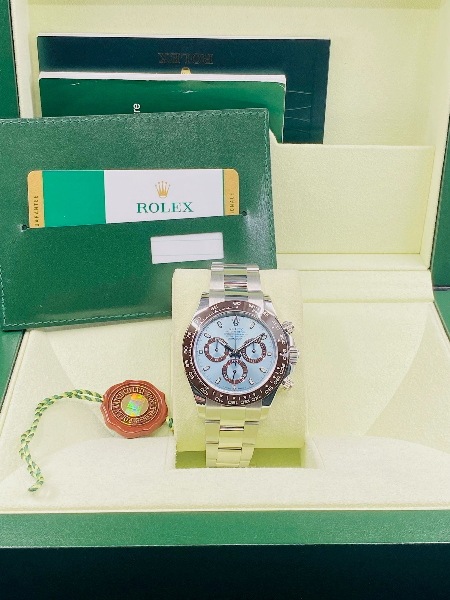 This watch is like new, complete with a box and papers.Case: Crafted entirely from 950 platinum, the 40mm Oyster case exudes elegance and durability.