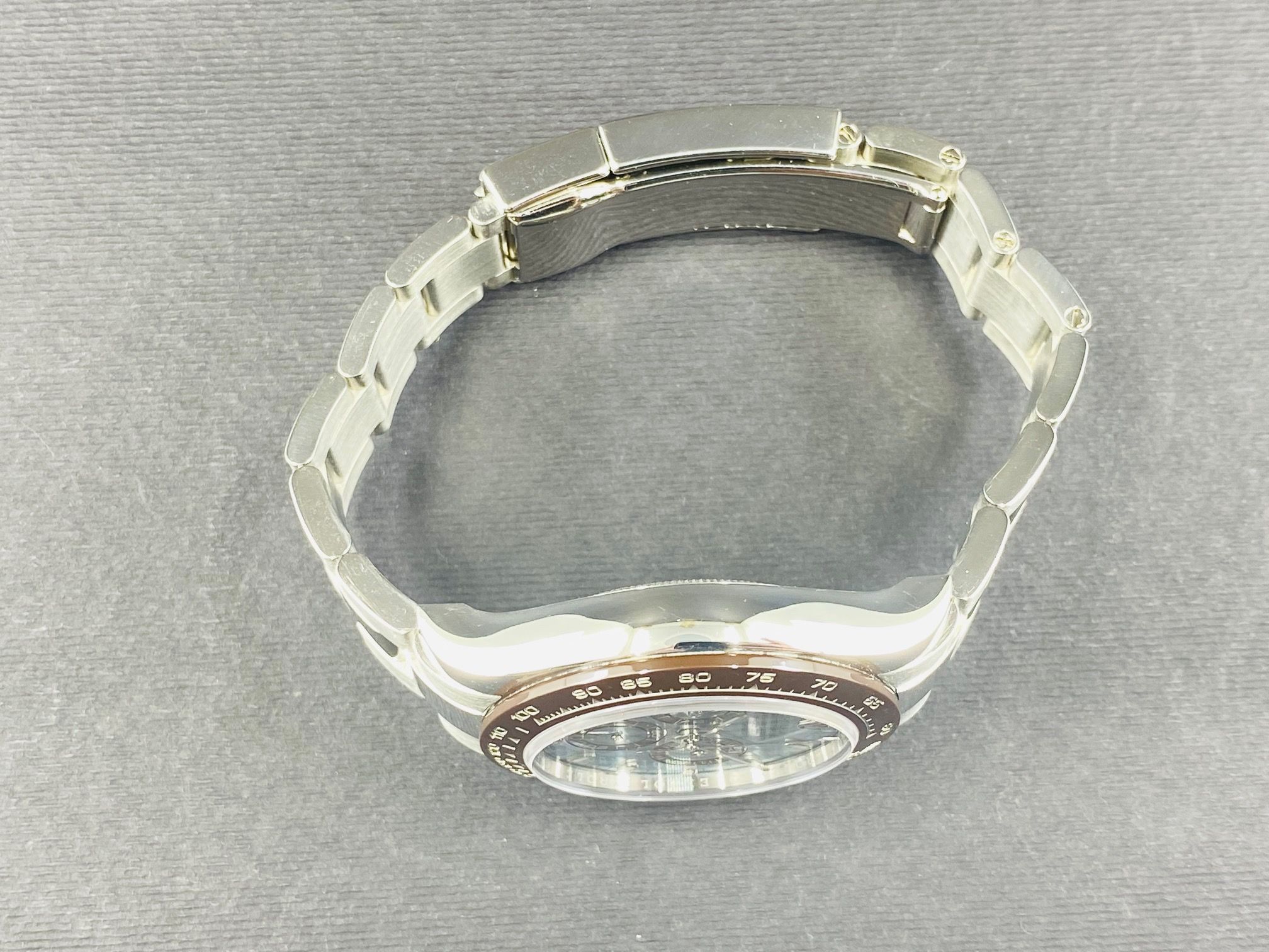 Bezel: Equipado com um bezel Cerachrom marrom castanho, adicionando um toque distinto à sua estética.