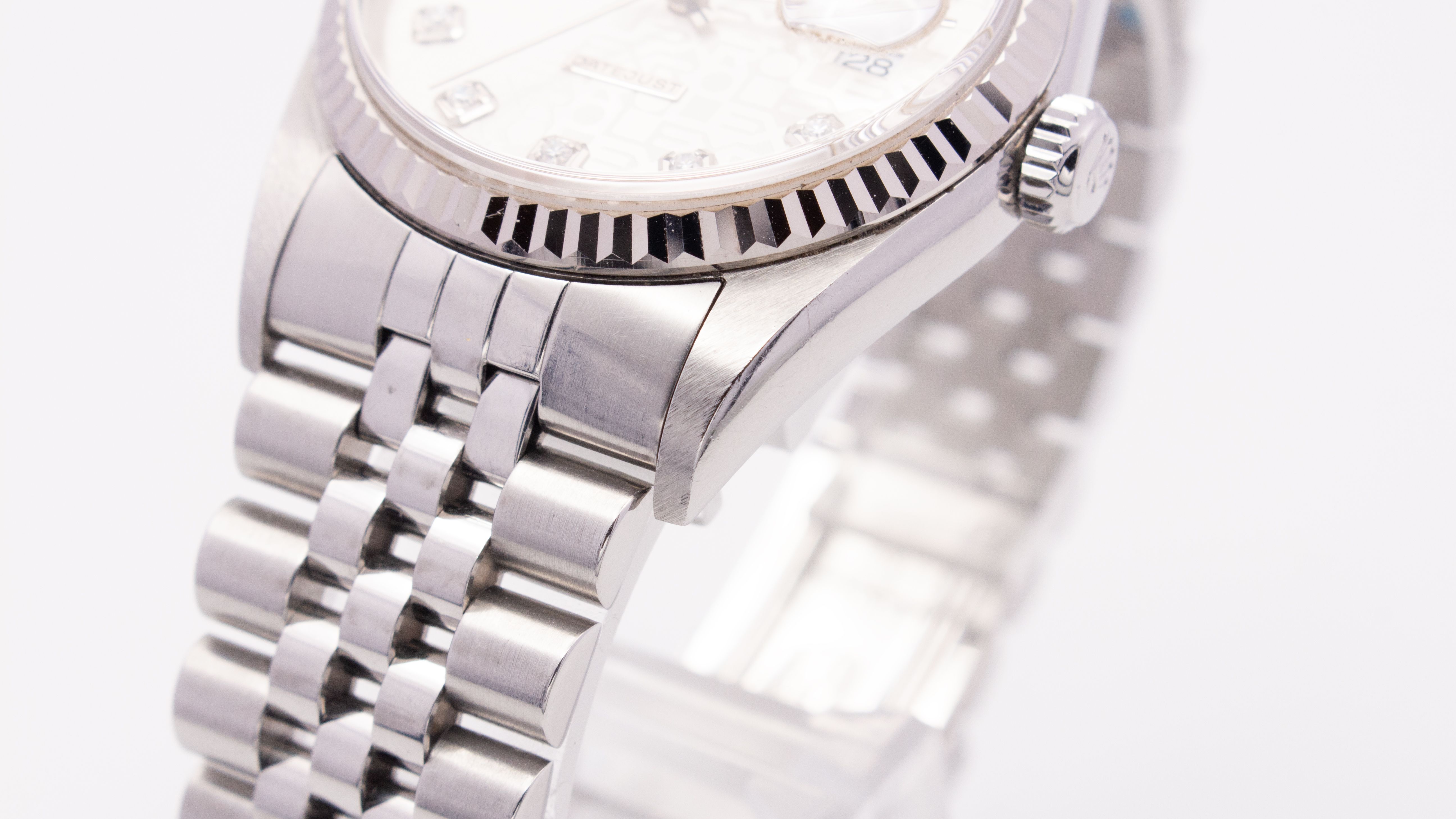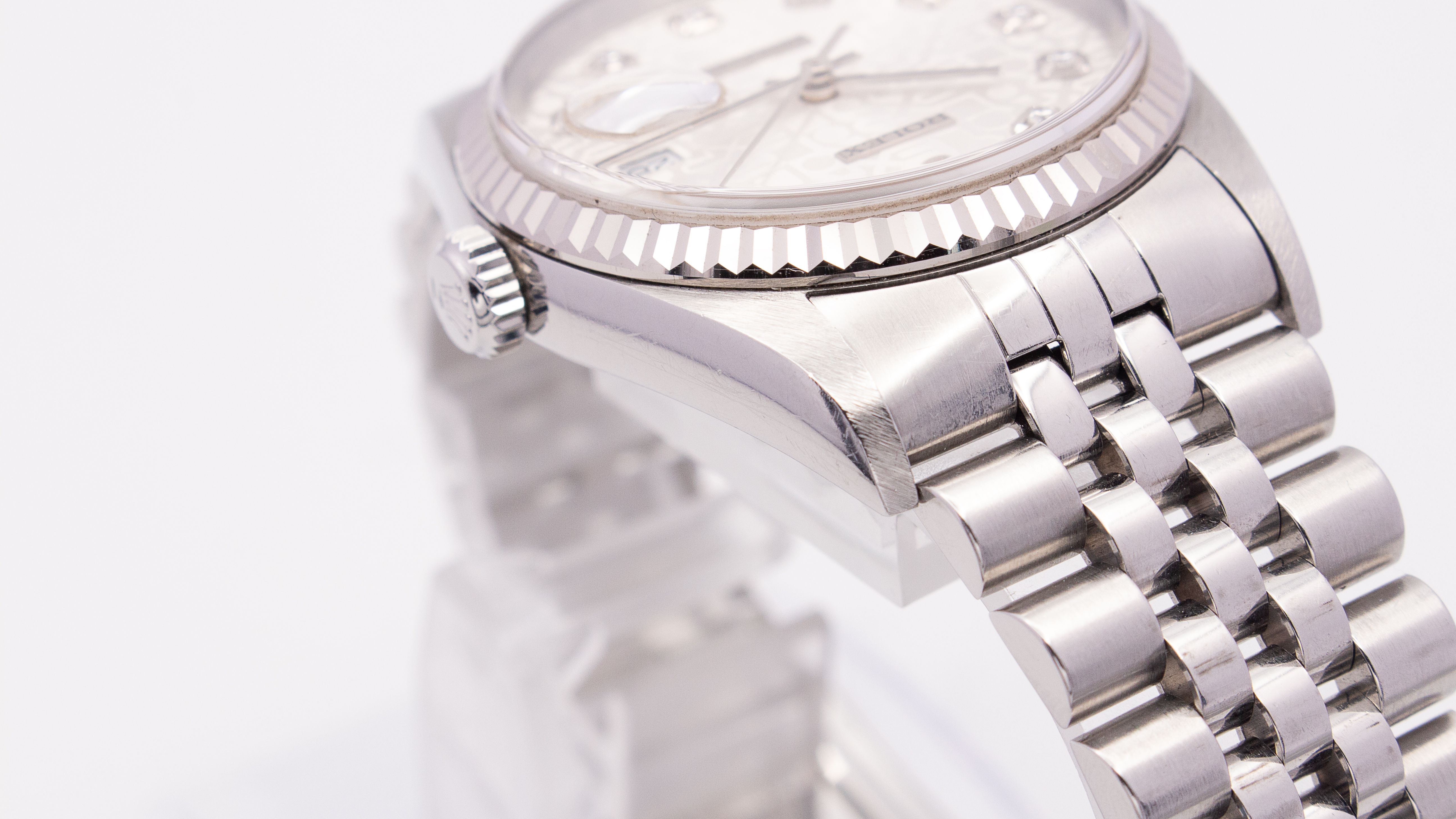 Um destaque especial deste relógio é o raro mostrador "Anniversary" ou "Computer" com índices de diamante, que confere à Datejust um caráter marcante e ao mesmo tempo luxuoso. O mostrador e os ponteiros correspondentes, sem material luminescente, estão em excelente estado de conservação.