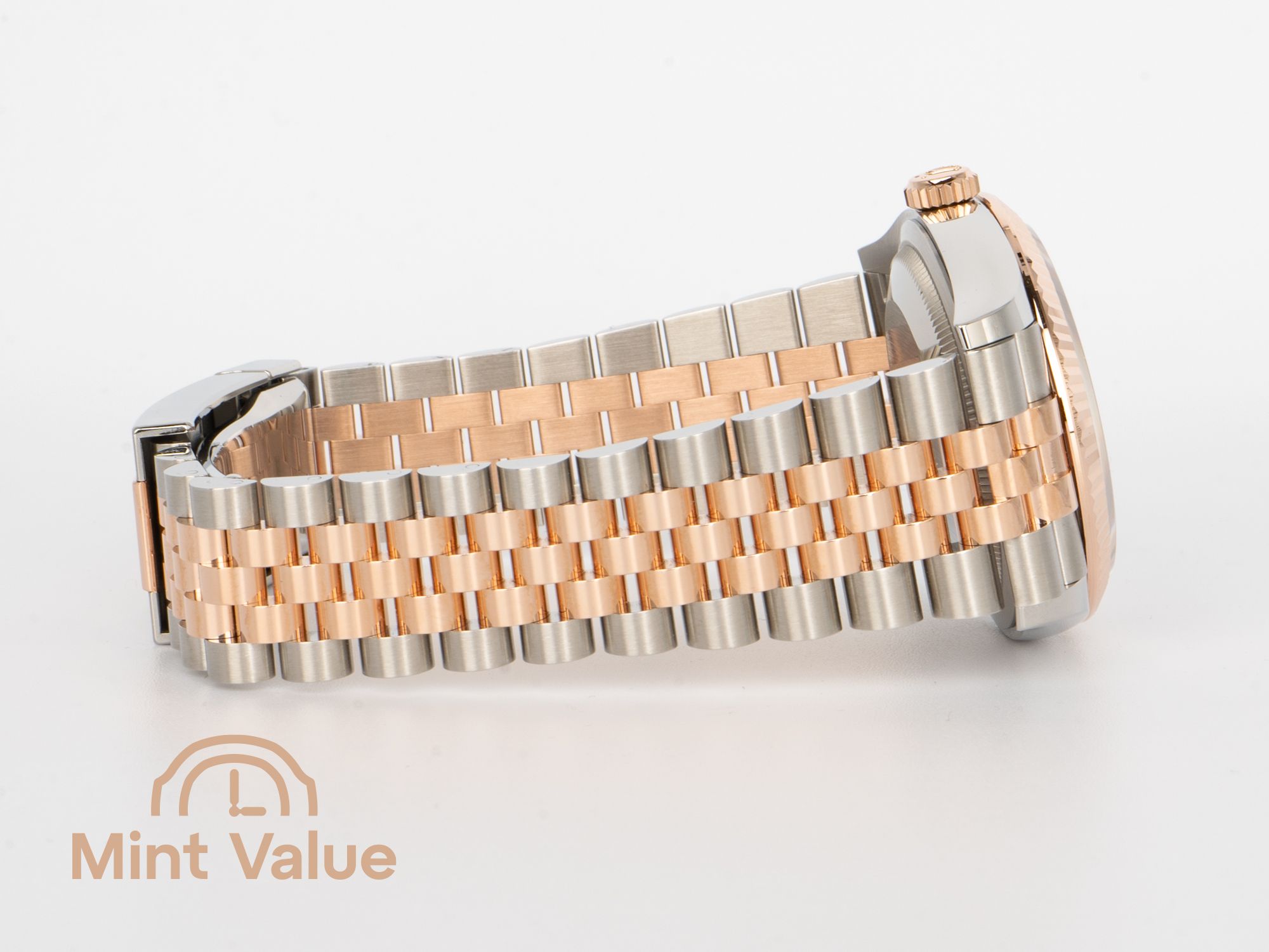 Datejust configurations combining Everose Rolesor, fluted bezel, Jubilee bracelet, and diamond Roman numerals are particularly appealing to collectors seeking a refined yet distinctive variation. Such models traditionally demonstrate strong demand and stable value retention on the secondary market.