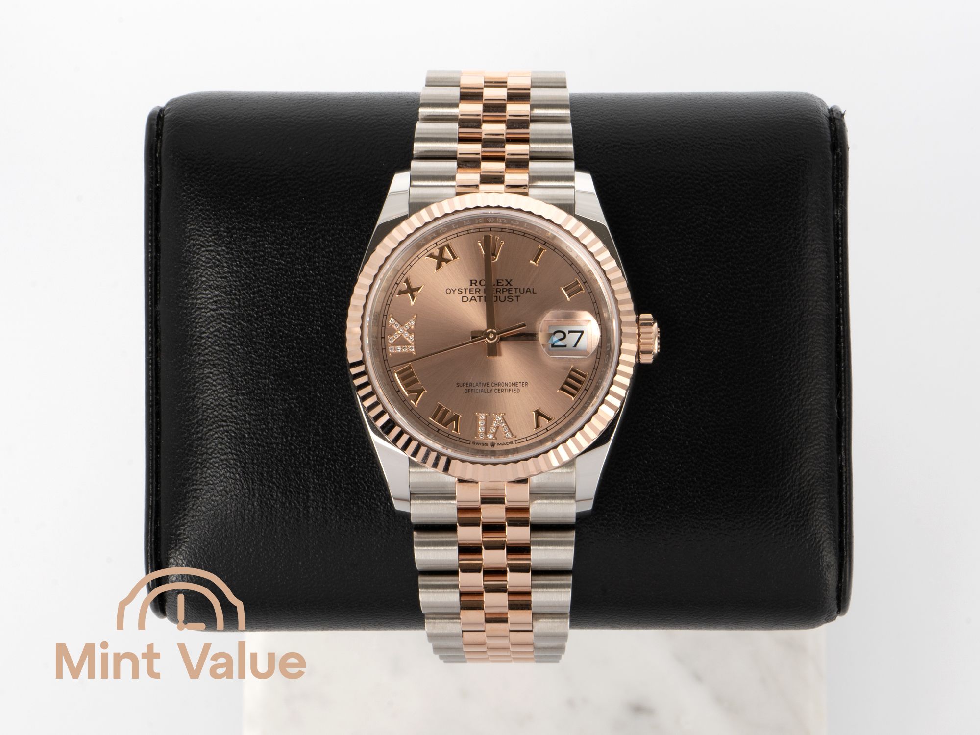 Rolex Datejust 36 Rose VI And IX With Diamonds — Ref. 126231A refined expression of elegance with a precisely placed diamond accent. The Rolex Datejust 36 Ref. 126231