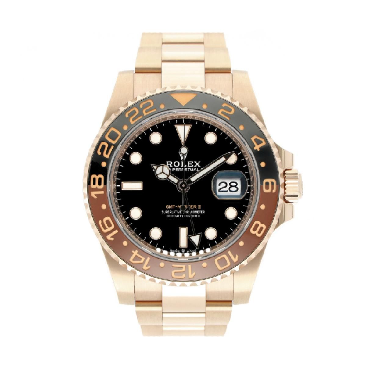 Rolex GMT-Master II de 2024 com caixa de ouro rosa de 40 mm e fecho dobrável. Este relógio masculino da Rolex está em muito bom estado.
