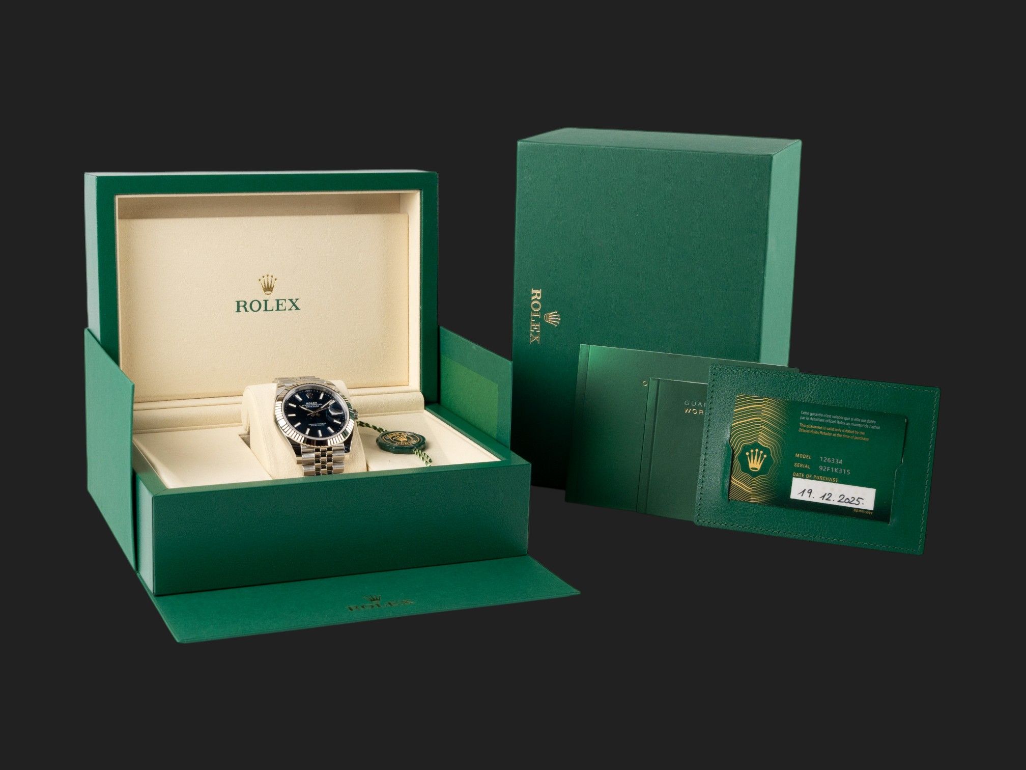 Dial colour is blue.Originally sold by Rolex 12/2025.