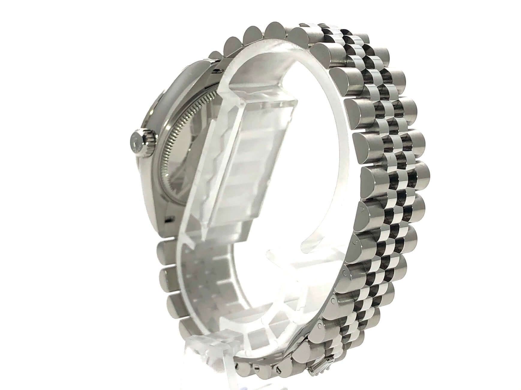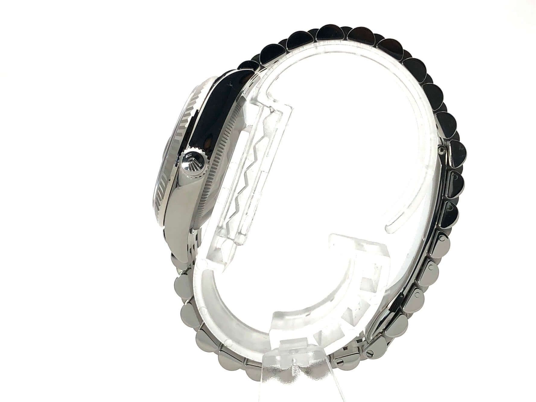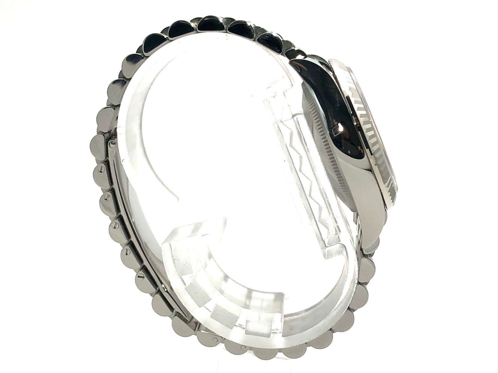 Case made of polished and satined stainless steel, case diameter 31 mm, bezel made of 18 kt white gold, fluted, Jubile stainless steel bracelet polished and satined with folding clasp, dark gray dial with applied Roman numerals, automatic, Rolex manufacture caliber 2236, 55 hour power reserve, date, chronometer, sapphire crystal, Screwed crown, screwed stainless steel base, water resistant up to 10 bar.