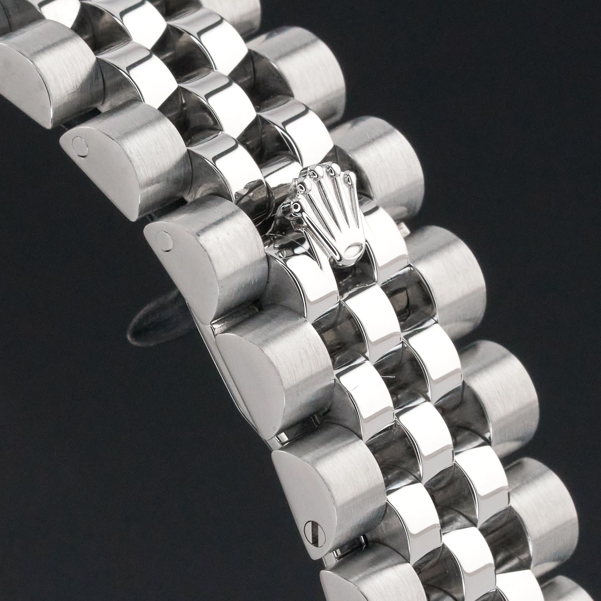 Este Rolex Datejust Turn-O-Graph 116264 apresenta um mostrador preto e é feito de aço inoxidável, com ano de produção de 2006.