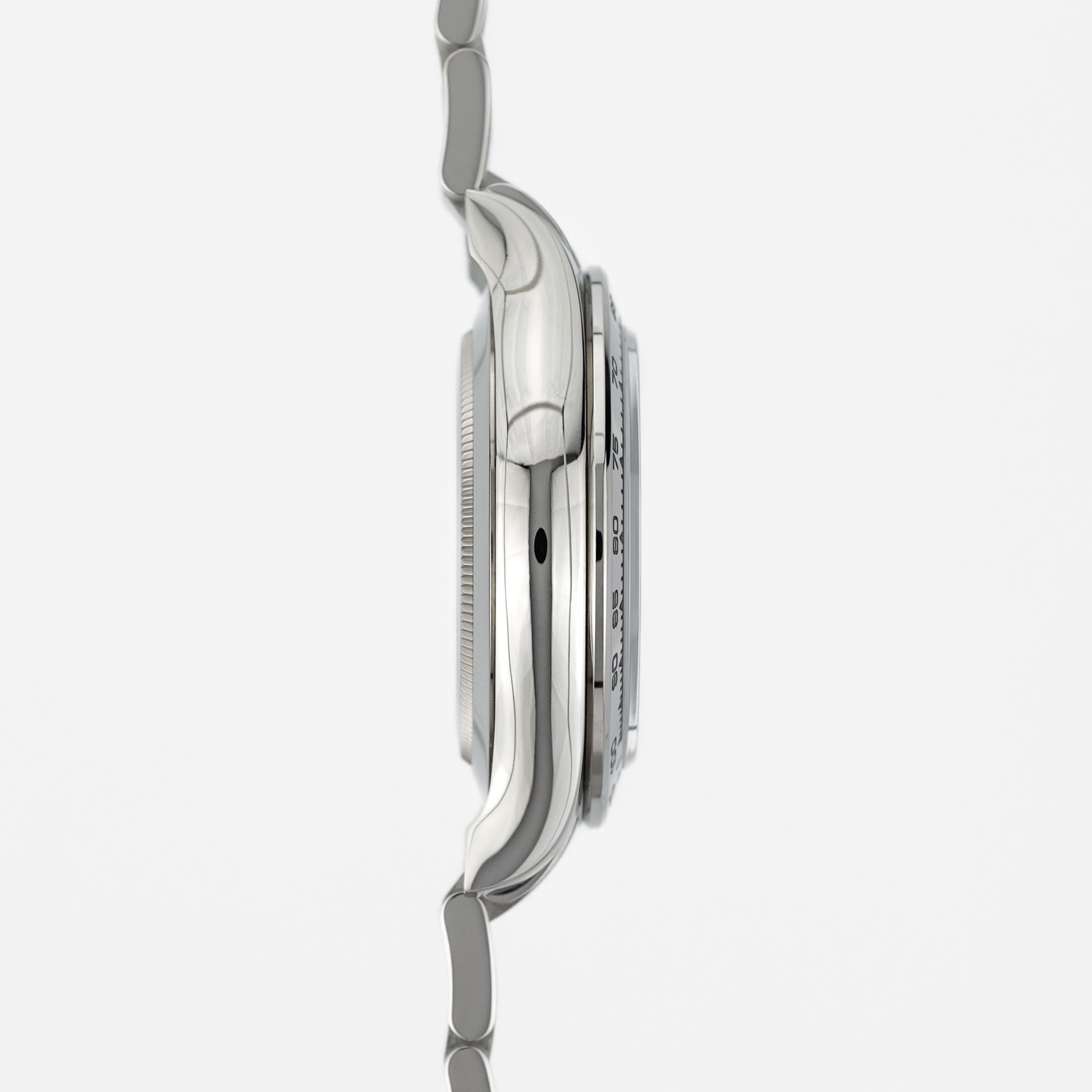 The specific watch is from the model's generation launched in 2011, and this particular one, besides having a solid white gold case, is a highly sought-after version with a blue dial – Rolex gives it the index BLUSO and calls it the Blue Index Dial. This version of the dial was launched in 2016 along with the John Mayer version (yellow gold with a green dial), and both models automatically became highly sought-after and pursued by fans of the brand. As I already mentioned, a special Rolex alloy of 18-carat white gold with platinum additives is used here, and another feature is that this example has a solid bracelet of the same material – again, in combination with the white gold case, a phenomenal result is achieved.