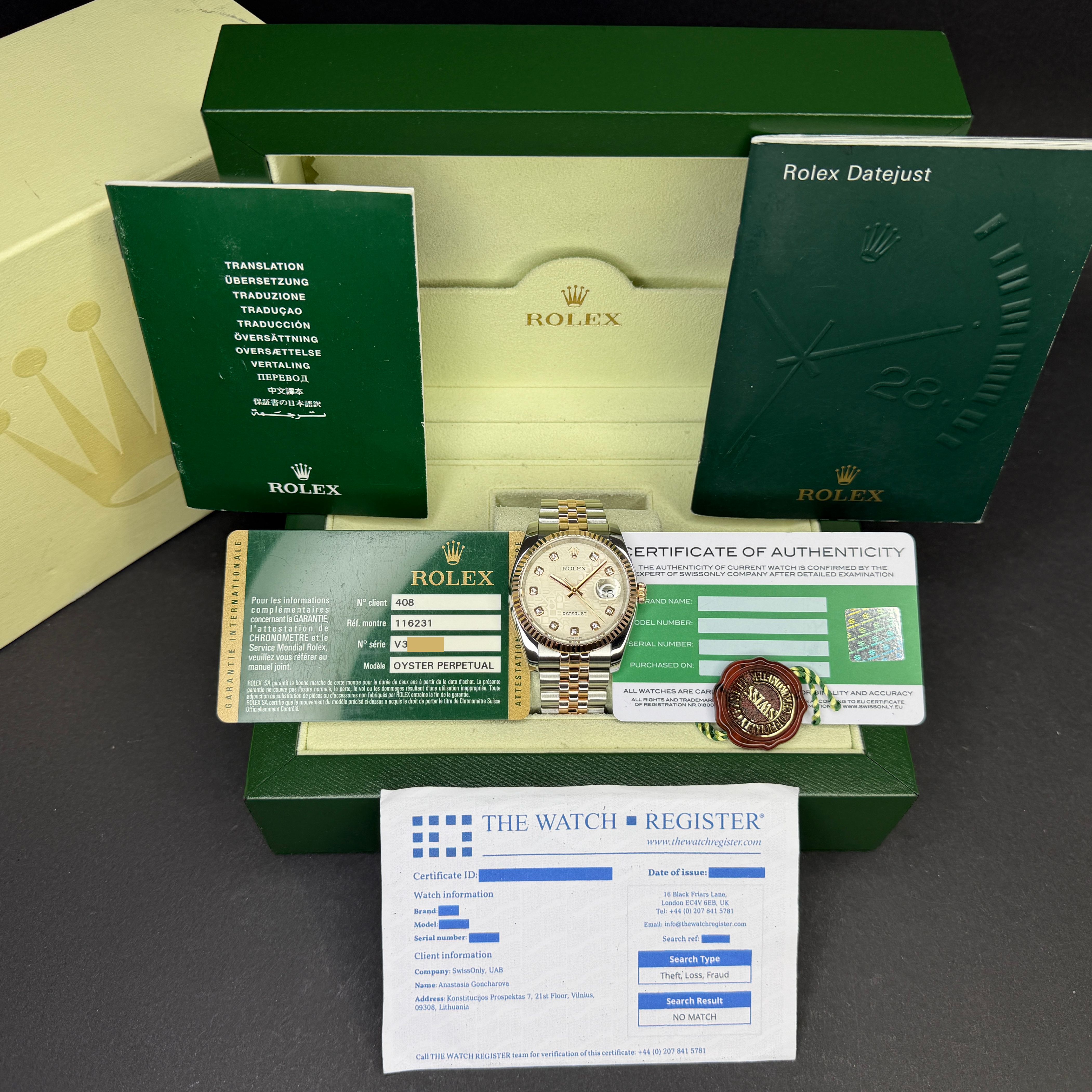 Rolex Datejust 36 Rolex Datejust, 116231, 36mm, 2009, Two-Tone, Silver Jubilee Diamond dial, Fullset, 1y warranty