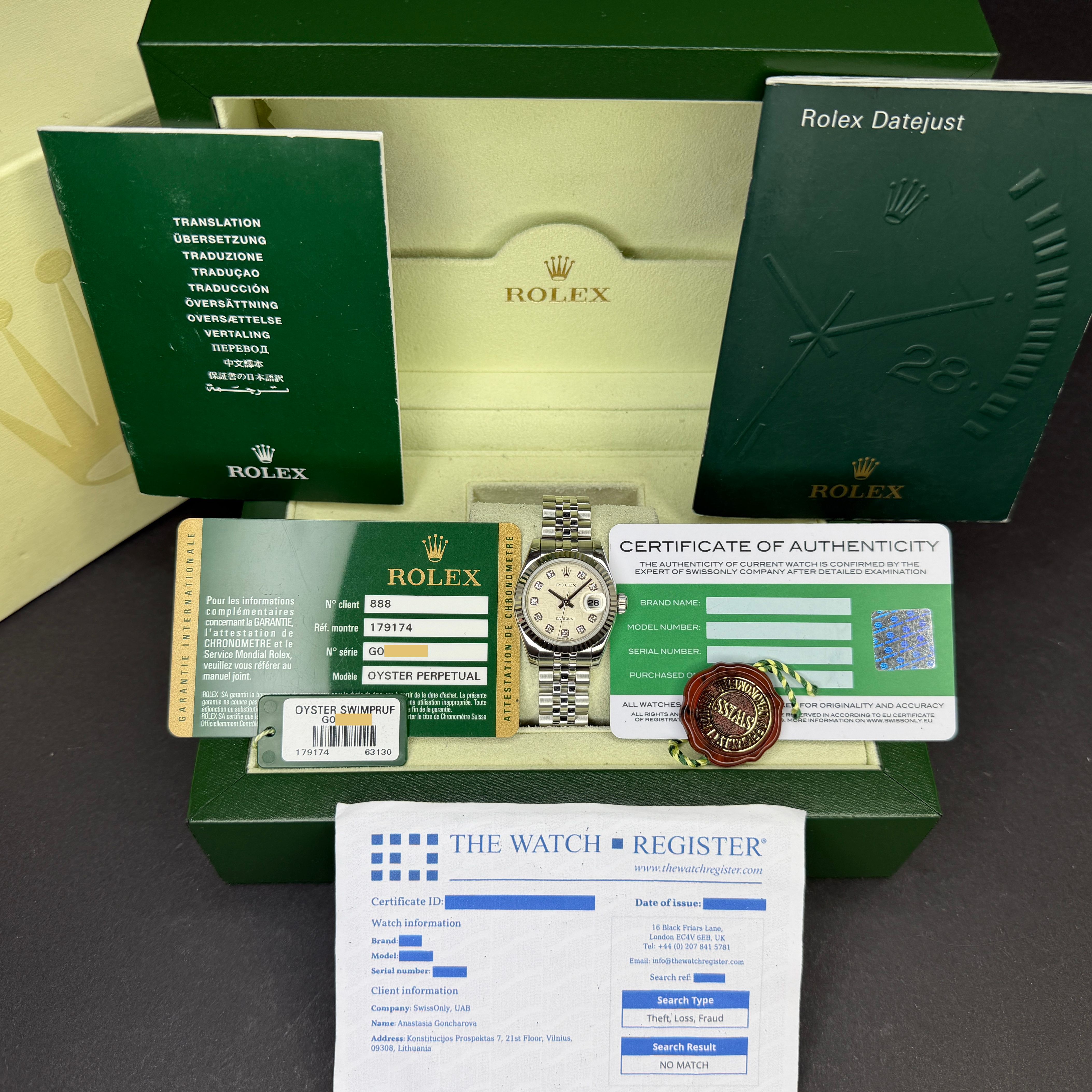 Rolex Lady Datejust, 179174, 26mm, 2010, Steel, Silver Jubilee Diamond dial, Fullset, 1y warranty
