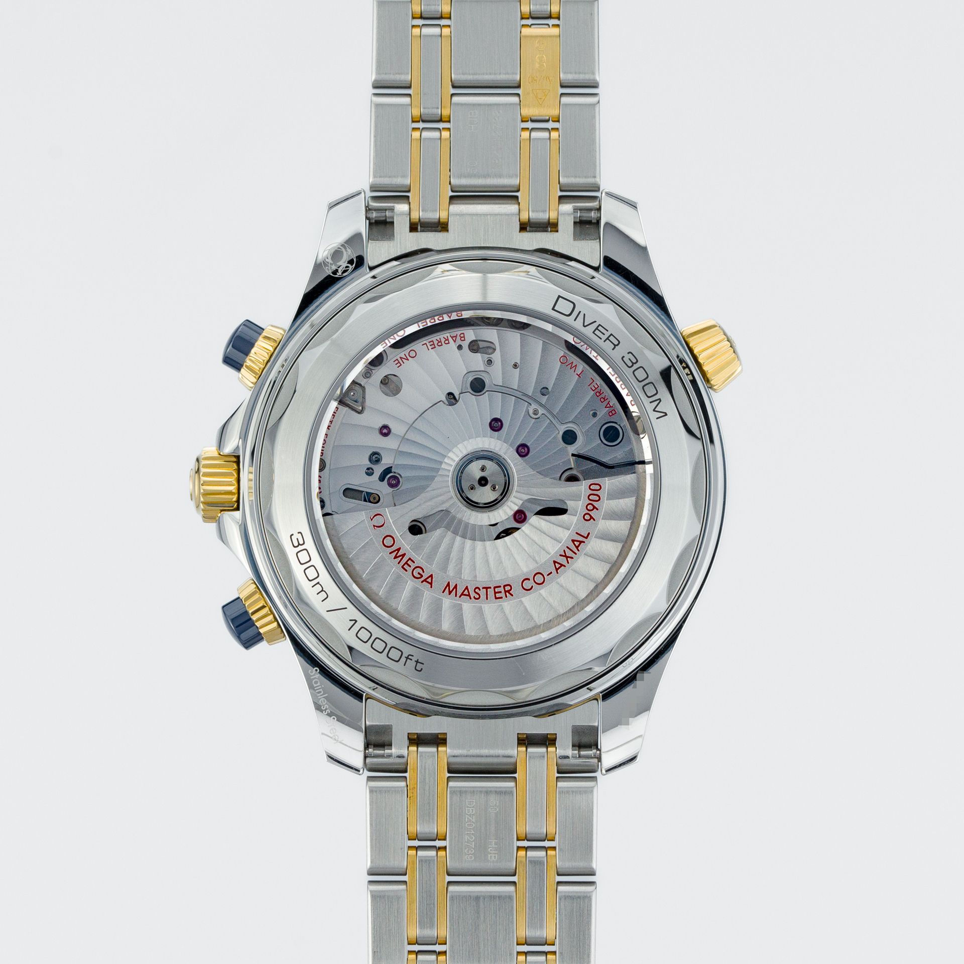 O relógio apresentado é um dos carros-chefes da série “Diver 300 M”, introduzido nesta forma em 2019, e o de hoje é um exemplo especial, pois é a versão em uma combinação de ouro amarelo 18 quilates e aço – que, em combinação com um mostrador azul, torna o conjunto geral muito equilibrado e atraente. O mostrador azul laqueado com as distintas «ondas» oferece excelente contraste graças aos marcadores de horas oversized aplicados e aos anéis dourados nos submostradores. A janela de data está posicionada às “6 horas”, e os ponteiros esqueléticos em ouro têm inserções de Superluminova. Uma das coisas que é quase impossível mostrar em toda a sua beleza em fotografias são as diferentes dimensões do mostrador. Os submostradores são rebaixados, separados por um guilochê diferente, e o logo metálico elevado da Omega faz com que este relógio tenha uma aparência incrível e realmente capture a luz.