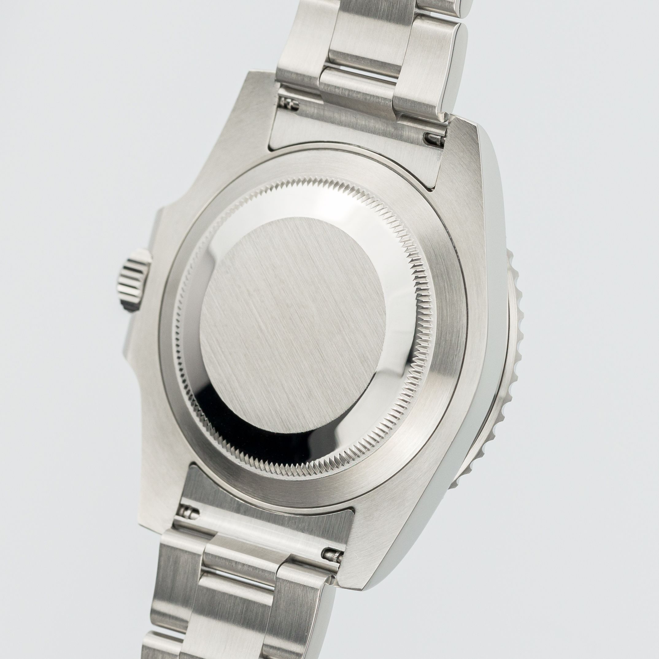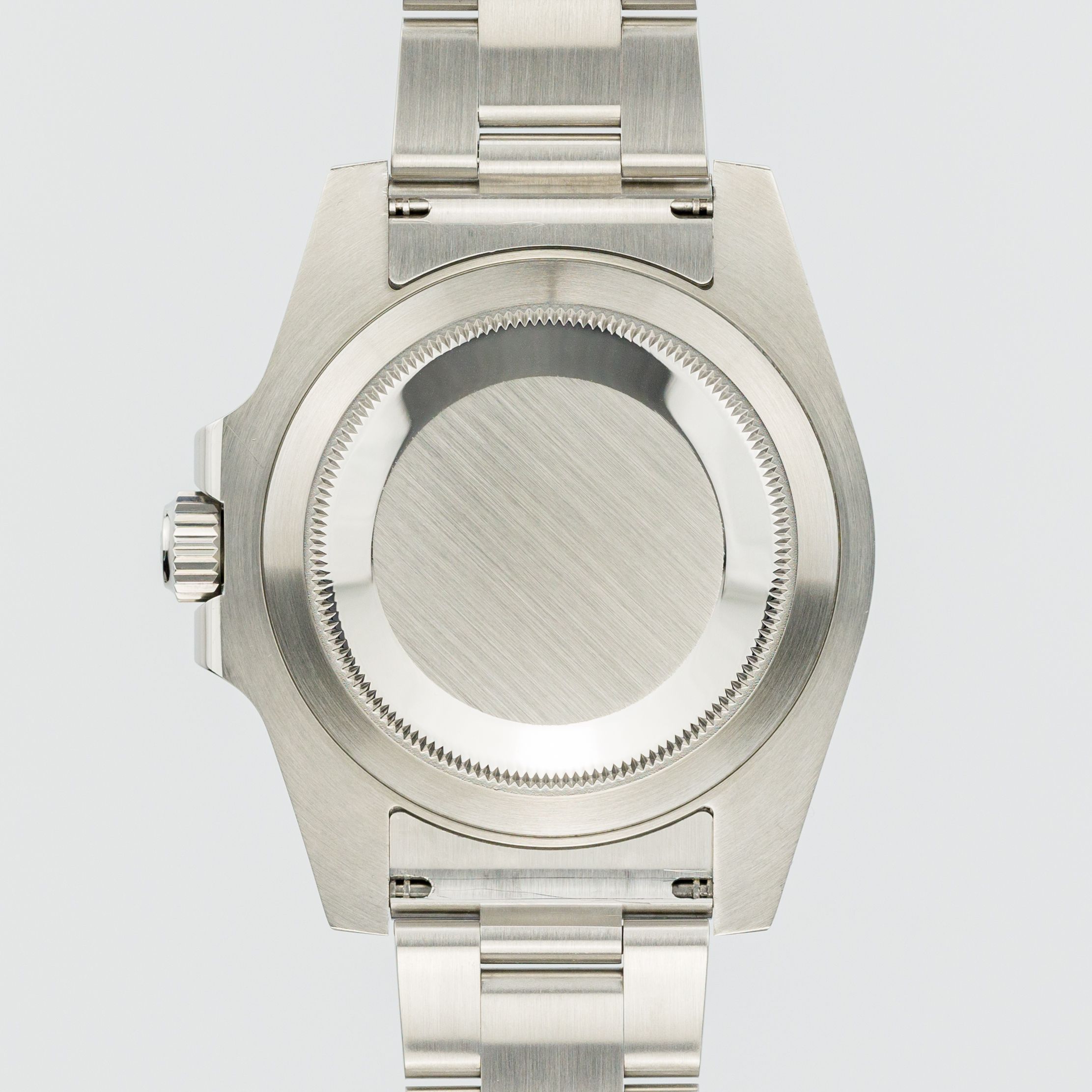 For the case back of the watch, Rolex uses a simple solid case back (as, by the way, in all its models) – in the Submariner's case, it is devoid of any markings, inscriptions, or other “decorations”. As we all know, for its watches Rolex uses noble 904L steel – the difference with the usual 316 L for other brands is its greater resistance (especially against salt water). It is a widely known fact that Rolex can be called fanatics when it comes to the steel they use – a large part of the metallurgical processes are done in-house to guarantee consistent quality of the raw material – many watches have passed through our hands, but we can say with absolute certainty that no other brand devotes so much attention and effort to the quality of the final product in terms of the case finishing – and as a result, a unique quality and presence cannot fail to be achieved.