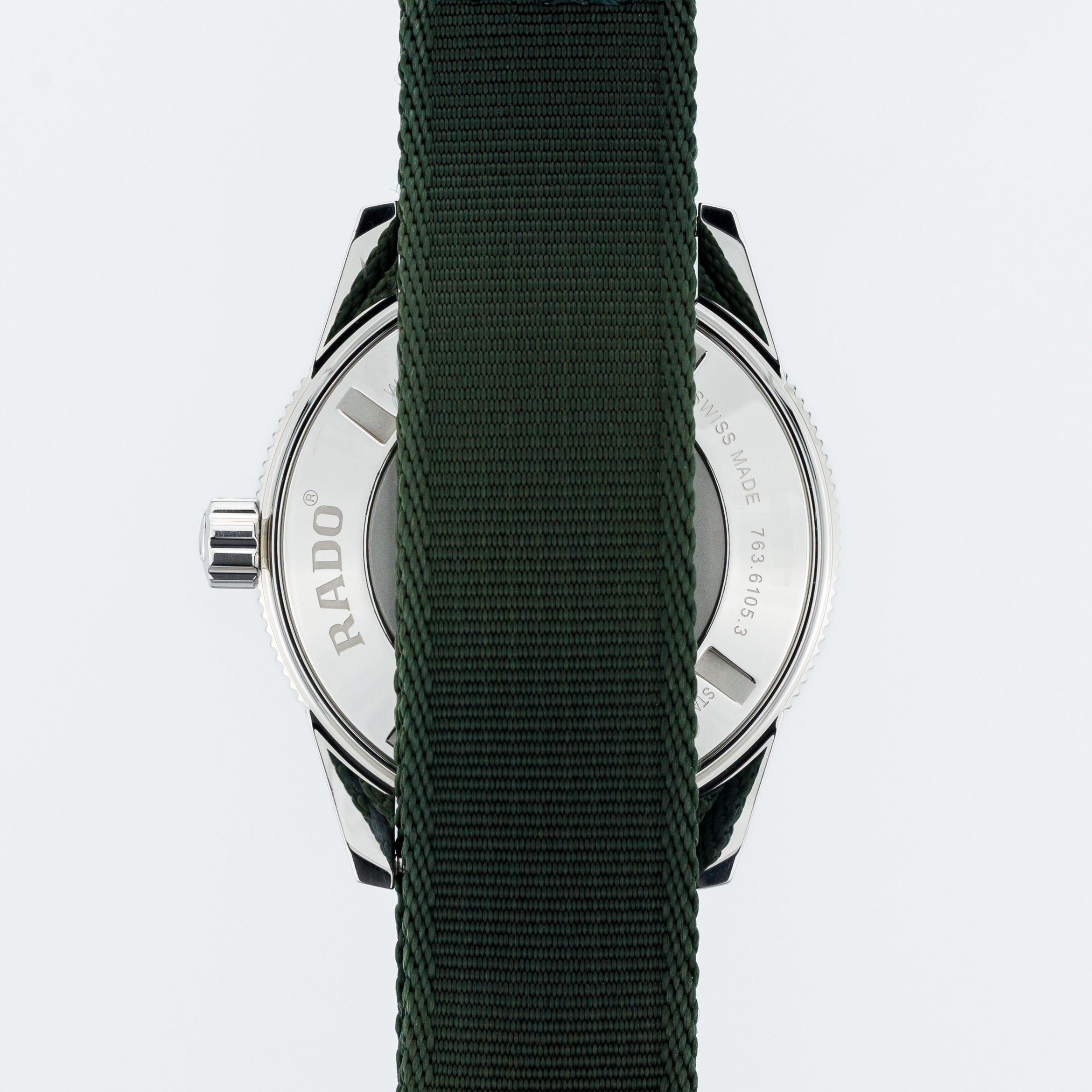 At the heart of the watch, under the factory index Rado Caliber R763, beats the very reliable automatic movement from ETA, proven in many brands and models – Caliber C07.611 (the well-known ETA 2824-2) – of course, a contemporary version, improved and specially created for Rado with an 80-hour power reserve, 25 jewels, and operating at a gentle frequency of 21,600 vibrations (3 Hz). The solid case back does not allow one to observe the superb finish of the movement and its operation.