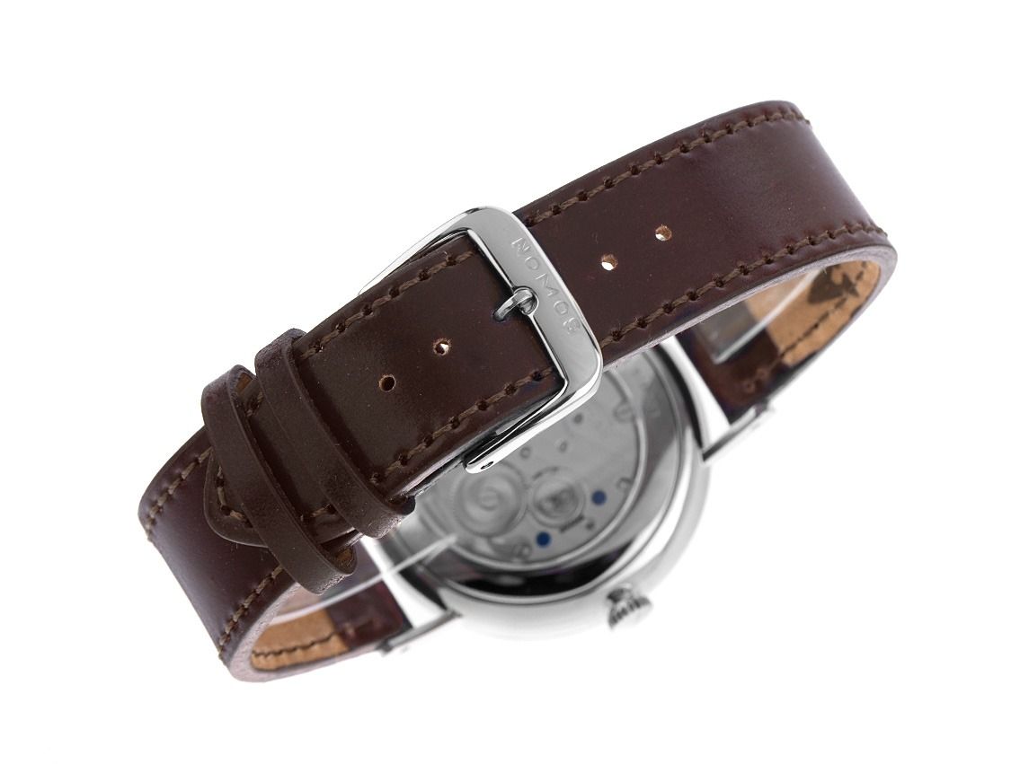Nomos Glashütte Ludwig Emaille Weiß Stahl Handaufzug Armband Leder