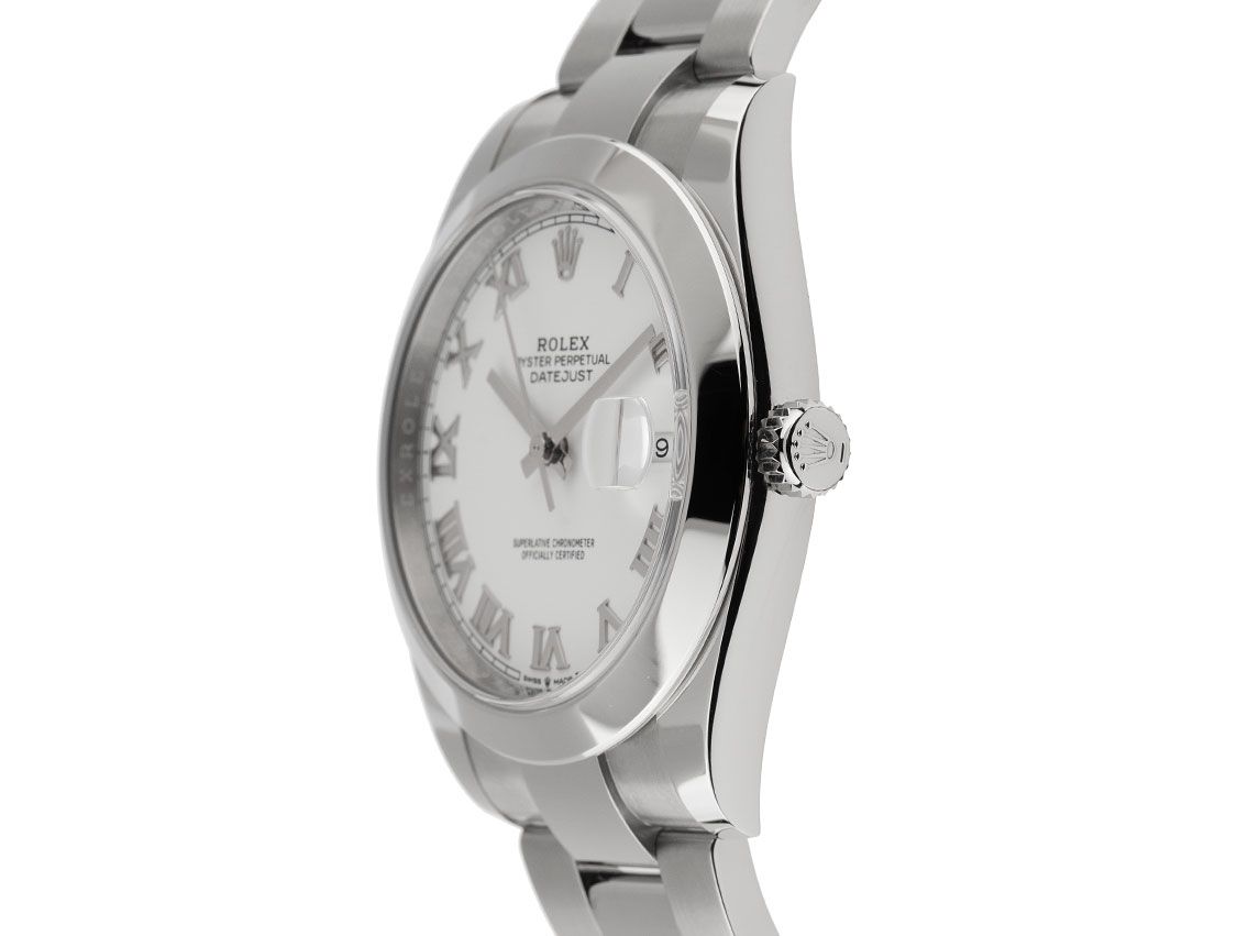 Rolex Datejust Stahl Automatik Armband OysterGehäuse Edelstahl poliert und satiniert, Gehäusedurchmesser ohne Krone 41mm, Gehäusehöhe 11,5mm. Lünette Edelstahl glatt und poliert. Armband Oyster Edelstahl poliert und satiniert, Faltschließe Edelstahl mit Hersteller-Logo. Zifferblatt weiß mit aufgesetzten weißgoldenen römischen Ziffern und weißgoldenen Zeigern. Uhrwerk Automatik, Chronometer mit Zeugnis, Rolex Manufakturkaliber 3235 mit 31 Edelsteinen. Anzeige von Stunde, Minute und Sekunde über Zeiger aus der Mitte mit Sekundenstopp zur sekundengenauen Einstellung der Uhrzeit, Datumsanzeige mit Schnellverstellung unter Glaslupe bei 3 Uhr. Saphirglas kratzfest. Krone verschraubbar mit Hersteller-Logo. Boden Edelstahl verschraubt. Gewicht der Uhr inklusive Armband 133g, Länge des Armbandes inklusive Gehäuse 170mm. Referenznummer 126300, Gehäusenummer: 8K941XXX, ID: P2463136120226H-10900/8600, Artikelnummer: 10000084684. Original Rolex Box mit Umkarton und Garantie Papiere von November 2019, LC 386 / Turkey sowie Beschreibung, Ledermäppchen, Rolex Chronometer-Siegel und Watchregister Auszug von Februar 2026, The Watch Register Zertifikat / ohne Eintrag (Internationale Datenbank für verlorene oder gestohlene Uhren), Full Set. Kapitalanlage mit Wertsteigerungspotential. Wie Neu. Lieferzeit sofort.