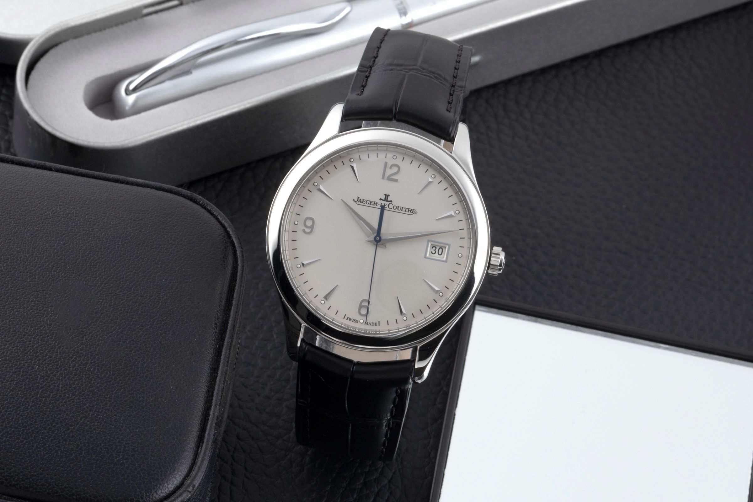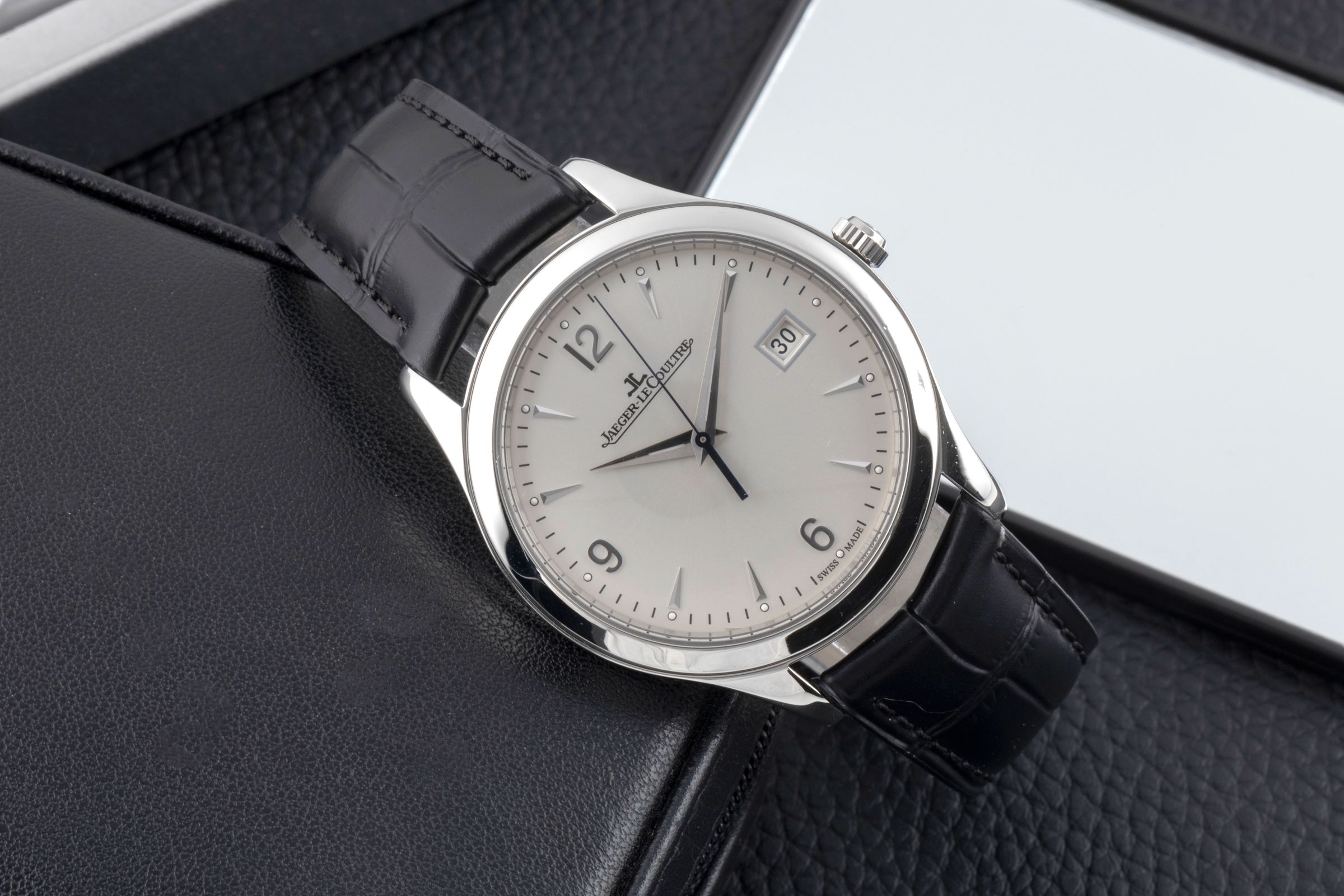 Alternative title: Jaeger-LeCoultre Q1548420 Master Control Date Stainless Steel / Silver / Alligator; Jaeger LeCoultre Master Control Stahl Automatik Ref. Q1548420 176.8.40.S Papiere [2600365]