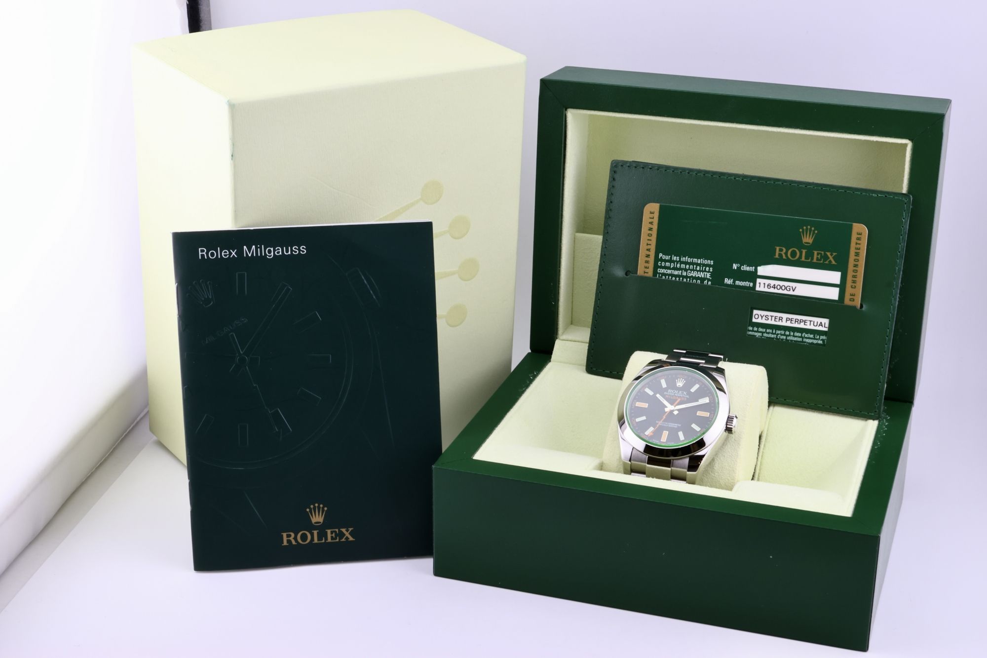 Rolex Milgauss Verde Wijzerplaat - NOS Ongebruikt - Doos Papieren 116400GV 2008.