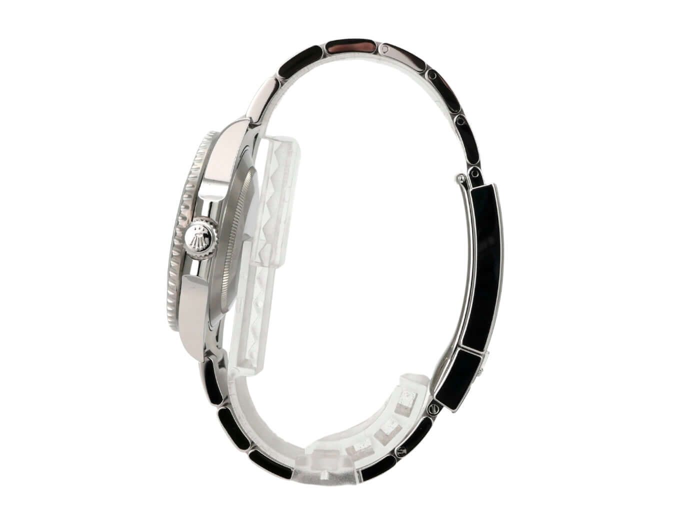 Caixa feita de aço inoxidável polido e acetinado, diâmetro da caixa 40 mm, altura da caixa 12,5 mm, bezel de aço inoxidável com inserção de cerâmica preta, escala de 60 minutos e ponto luminoso, rotativo unidirecional, pulseira Oyster de aço inoxidável acetinado com fecho de segurança dobrável, mostrador preto com índices luminosos aplicados e pontos luminosos, ponteiros luminosos, movimento automático, calibre Rolex 3130 com 31 rubis, 28.800 vibrações por hora, cronômetro, cristal de safira resistente a riscos, coroa rosqueada com proteção lateral, fundo rosqueado em aço inoxidável, resistente à água até 30 bar.