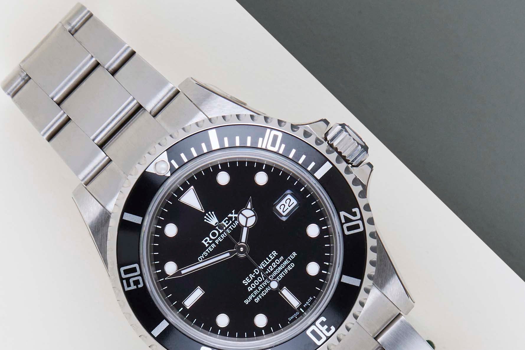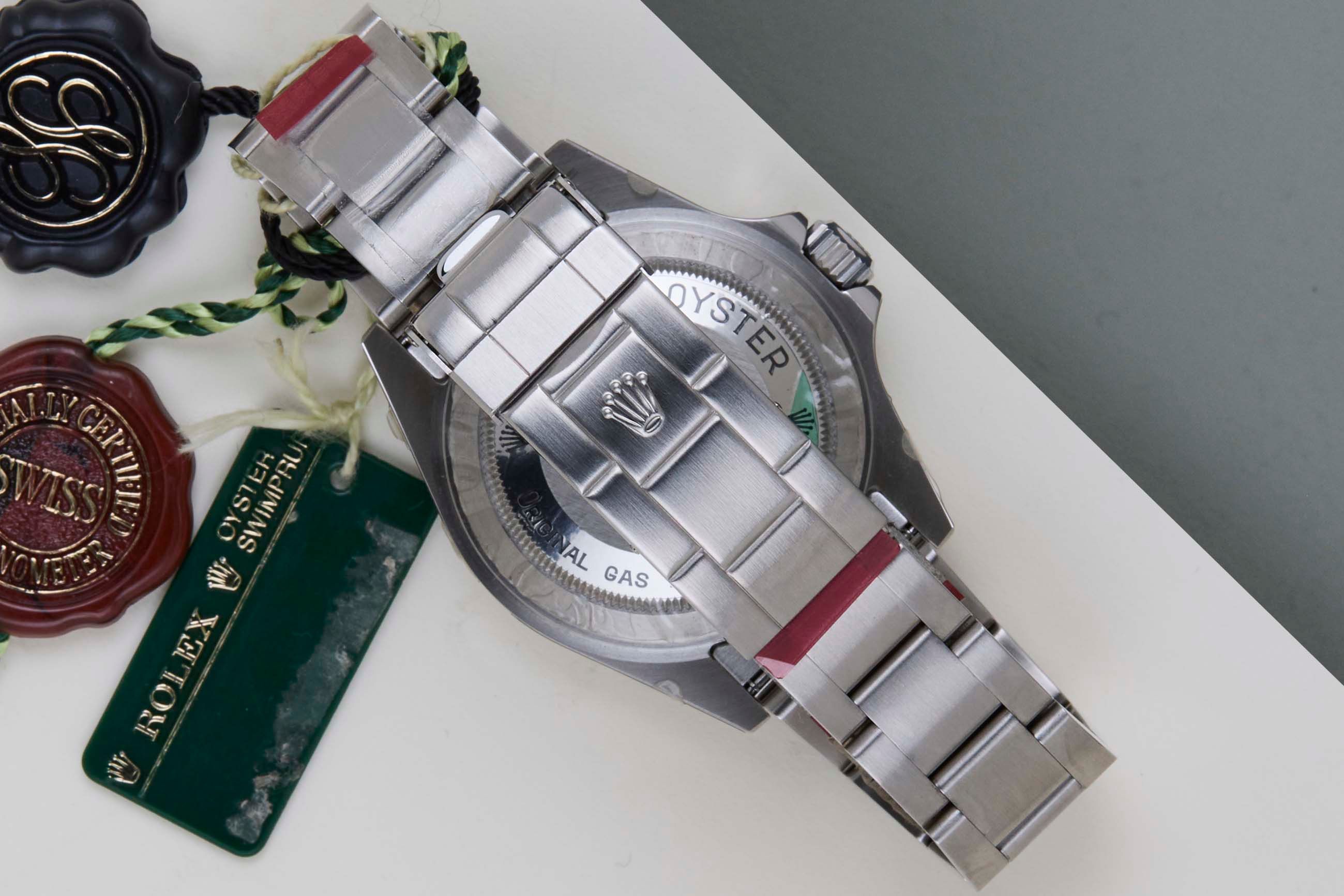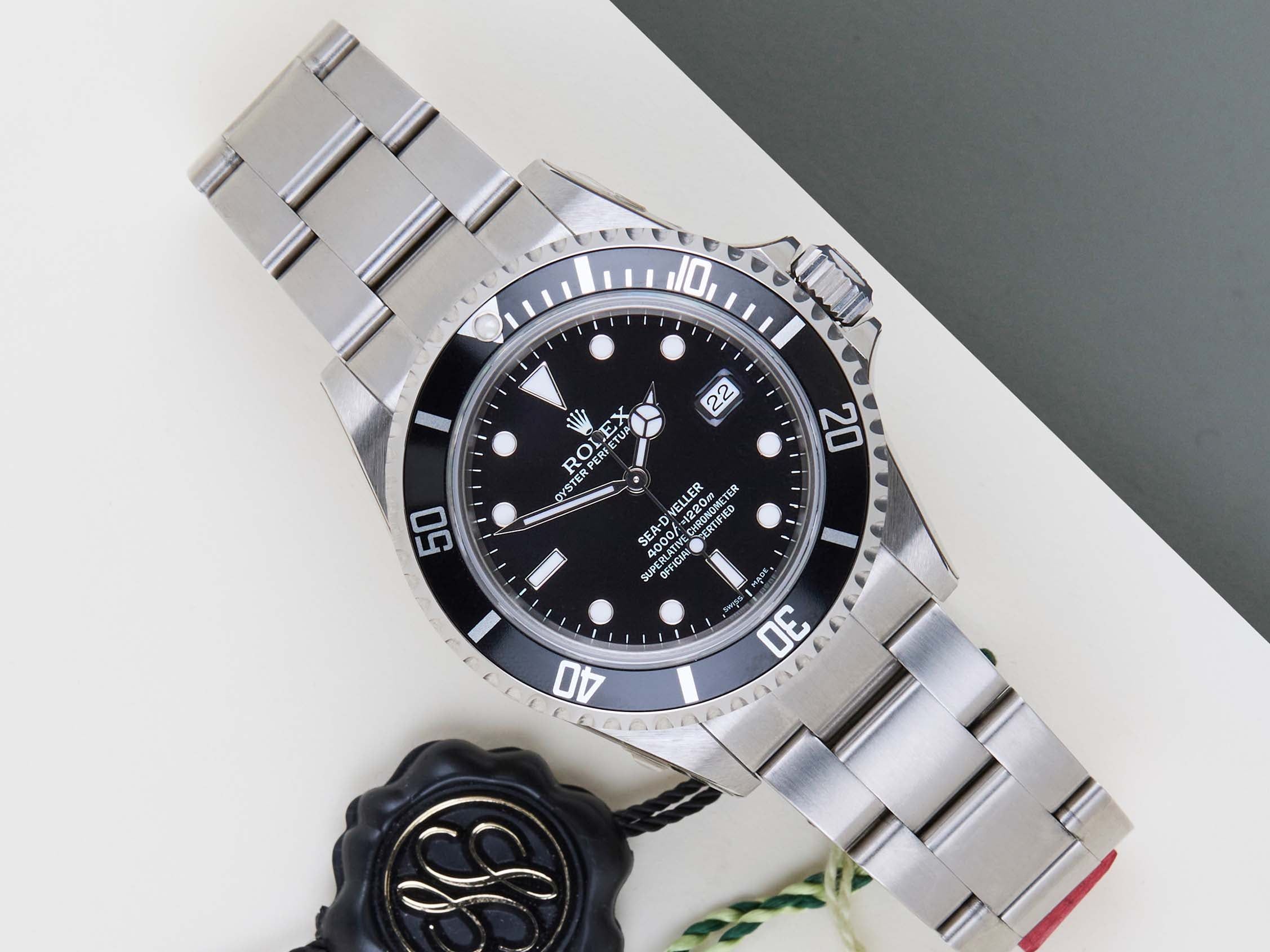 NOS condition 'New Old Stock' Full Stickers | Full Set | EO11 Clasp Code | Bracelet Code 93160A | Hologram Caseback Sticker | Including Diver Extension and Toolkit | Including Rolex Green TagThe rotatable bezel is one of the key functionalities of the Sea Dweller. The luminescent capsule on the zero marker makes sure that a diver is always able to accurately monitor diving time, no matter how dark the environment.This Sea Dweller comes with a Black dial and bezel and the famous Rolex Oyster bracelet. The watch is fully made out of stainless steel. Rolex uses 904L in its steel watches, which is an extremely resistant and highly polishable superalloy.This specific Rolex Sea-Dweller is originally delivered in 2007 and is in New & Unworn condition and comes as a full-set including the original Rolex Papers and Box. Furthermore, the watch has been checked by our watchmakers, and therefore it comes with one year of warranty.