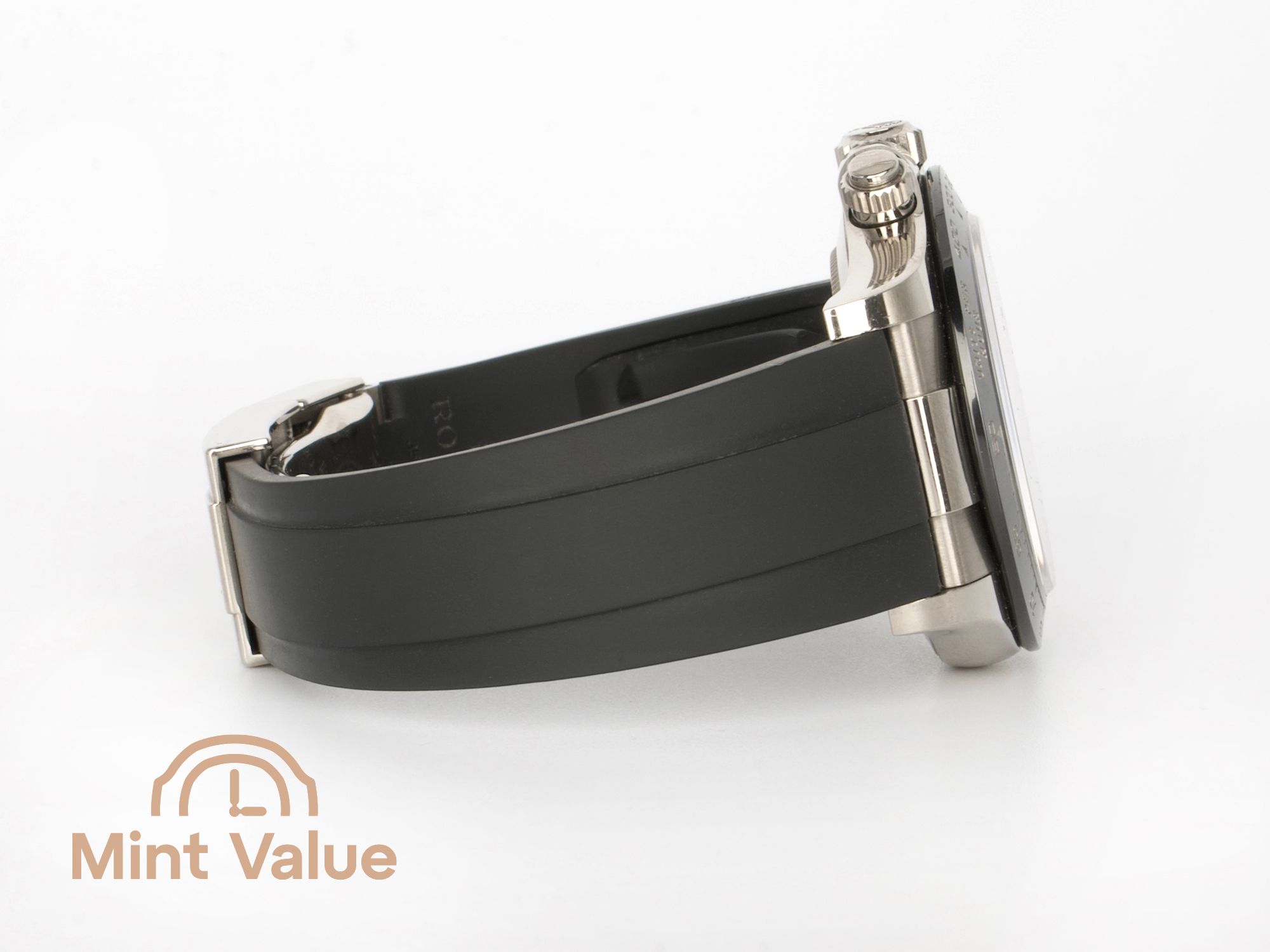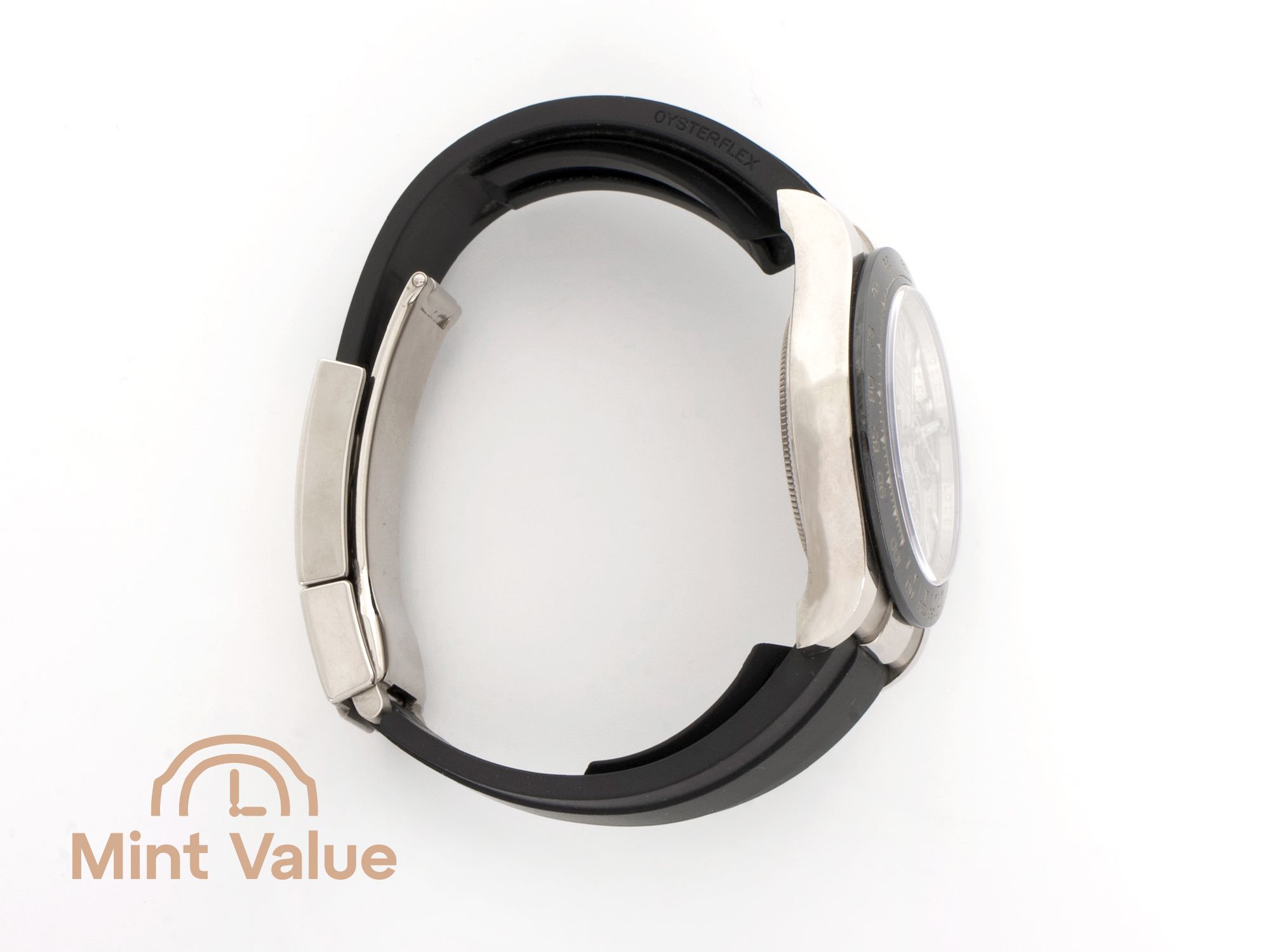 White gold brings an understated glow rather than overt shine, while the black Cerachrom bezel anchors the design with depth and precision. The Oysterflex strap adds comfort without compromising the watch’s sophistication.