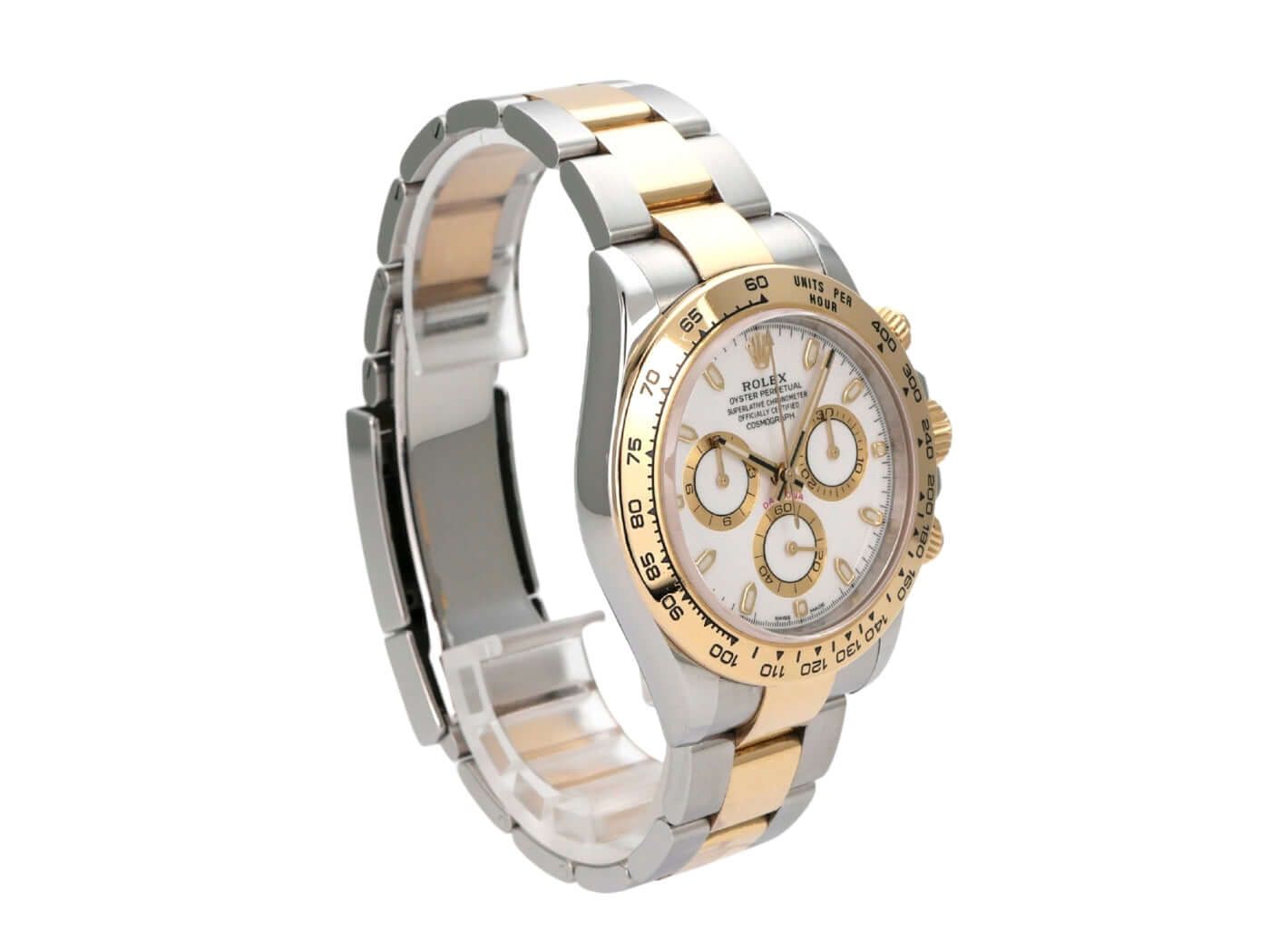Rolex Cosmograph Daytona Stainless Steel / Yellow Gold Ref. 116503 White from 2023Case of 40 mm stainless steel polished and satin-finished, 18 kt yellow gold bezel polished with tachymeter scale, Oyster stainless steel / 18 kt yellow gold bracelet polished and satin-finished with safety folding clasp, white dial with luminous markers, luminous hands, self-winding, Rolex manufacture caliber 4130, 44 jewels, power reserve approx. 72 hours, chronometer, sapphire glass, screw-down crown with flank protection, screwed stainless steel back, water-resistant up to 10 bar.