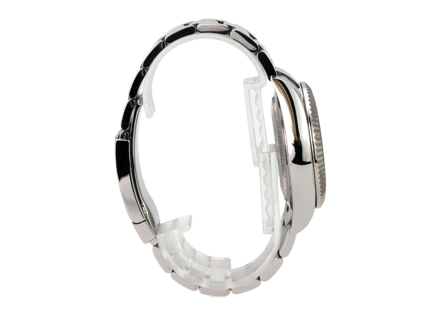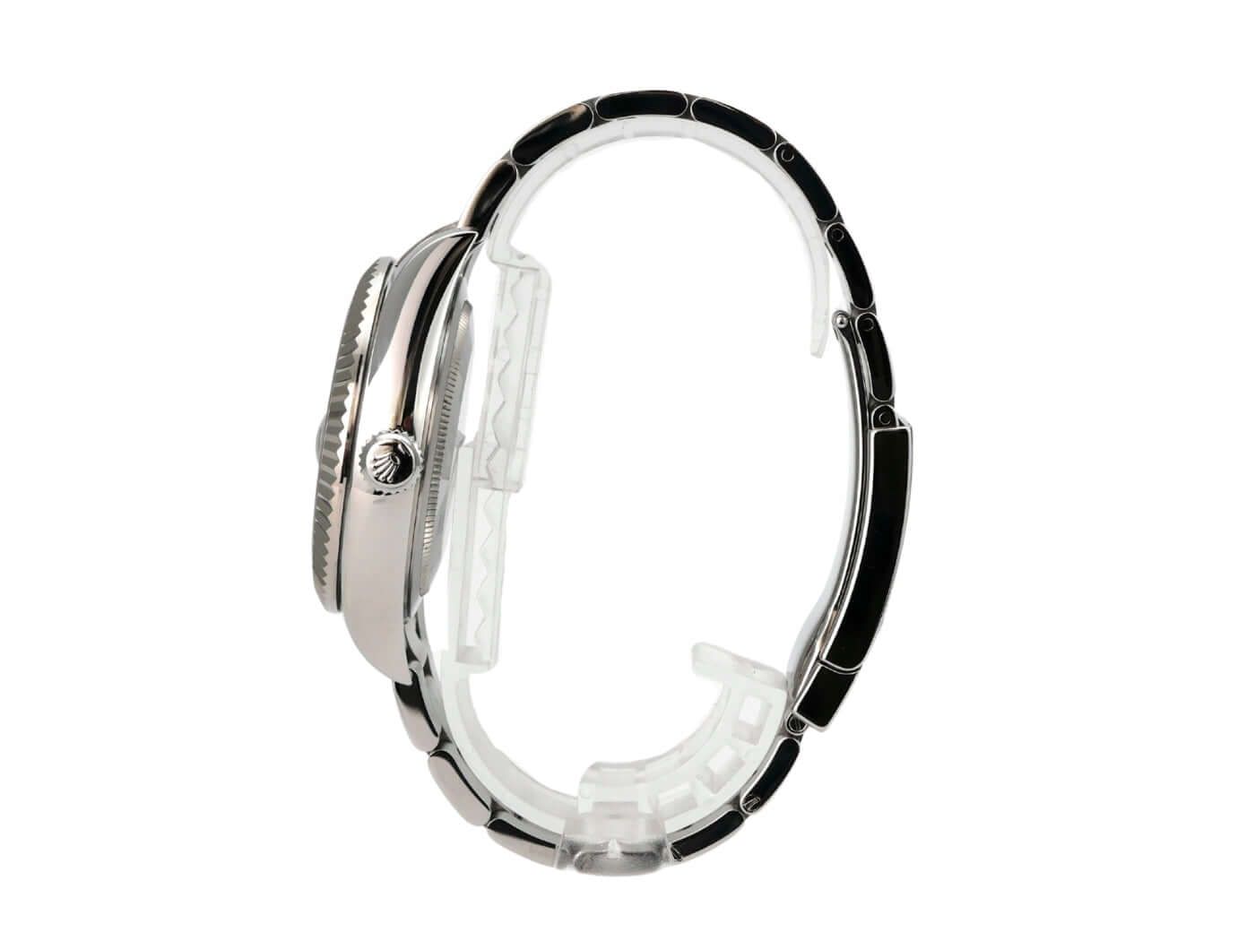 Rolex Sky-Dweller stainless steel / white gold Ref. 326934 black LC100 from 2017Case made of polished and satin-finished stainless steel, case diameter 42 mm, case height 14 mm, bidirectional rotating Ring-Command bezel made of 18 kt white gold, Oyster bracelet made of polished and satin-finished stainless steel with Oysterclasp folding clasp, black dial with applied luminous hour markers, luminous hands, self-winding movement, Rolex manufacture caliber 9001 with 40 jewels, frequency 28,800 vibrations per hour, power reserve of approximately 72 hours, chronometer, SAROS annual calendar, month display in a window, scratch-resistant sapphire crystal, screw-down crown, screwed stainless steel back, water-resistant up to 10 bar.