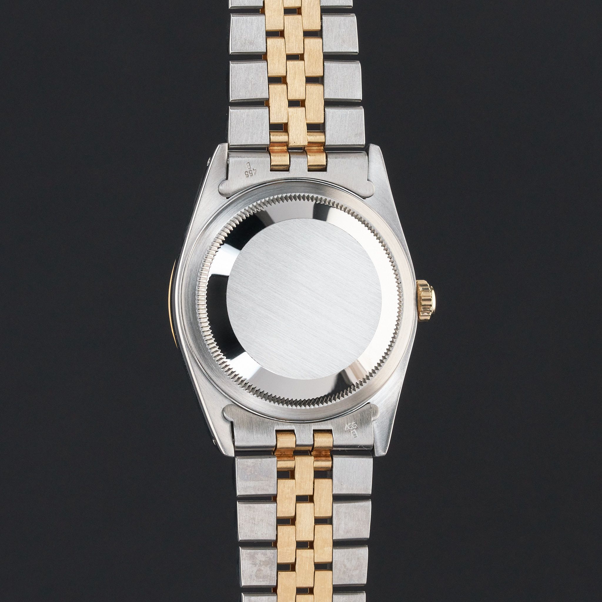 This Rolex Datejust 16233 features a Silver dial and is crafted from 18K yellow gold and stainless steel, with a production year of 1990.Case No: E38XXXX