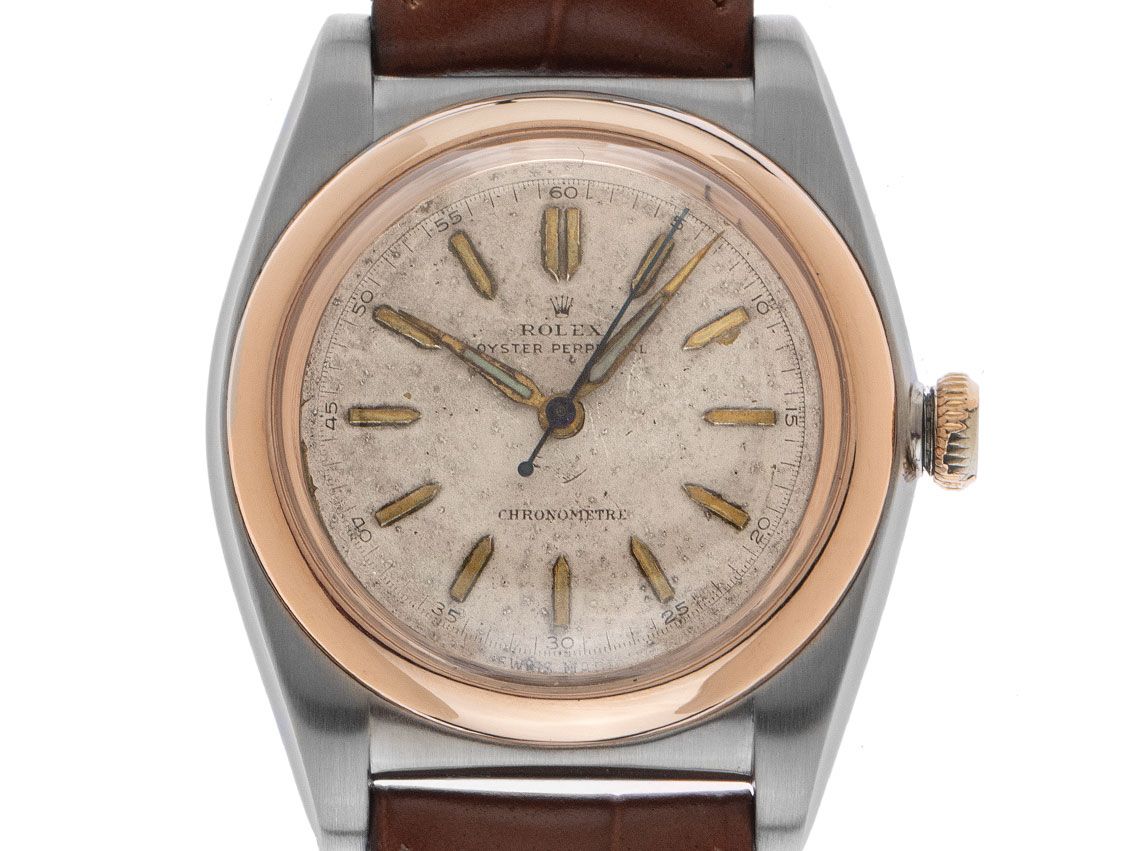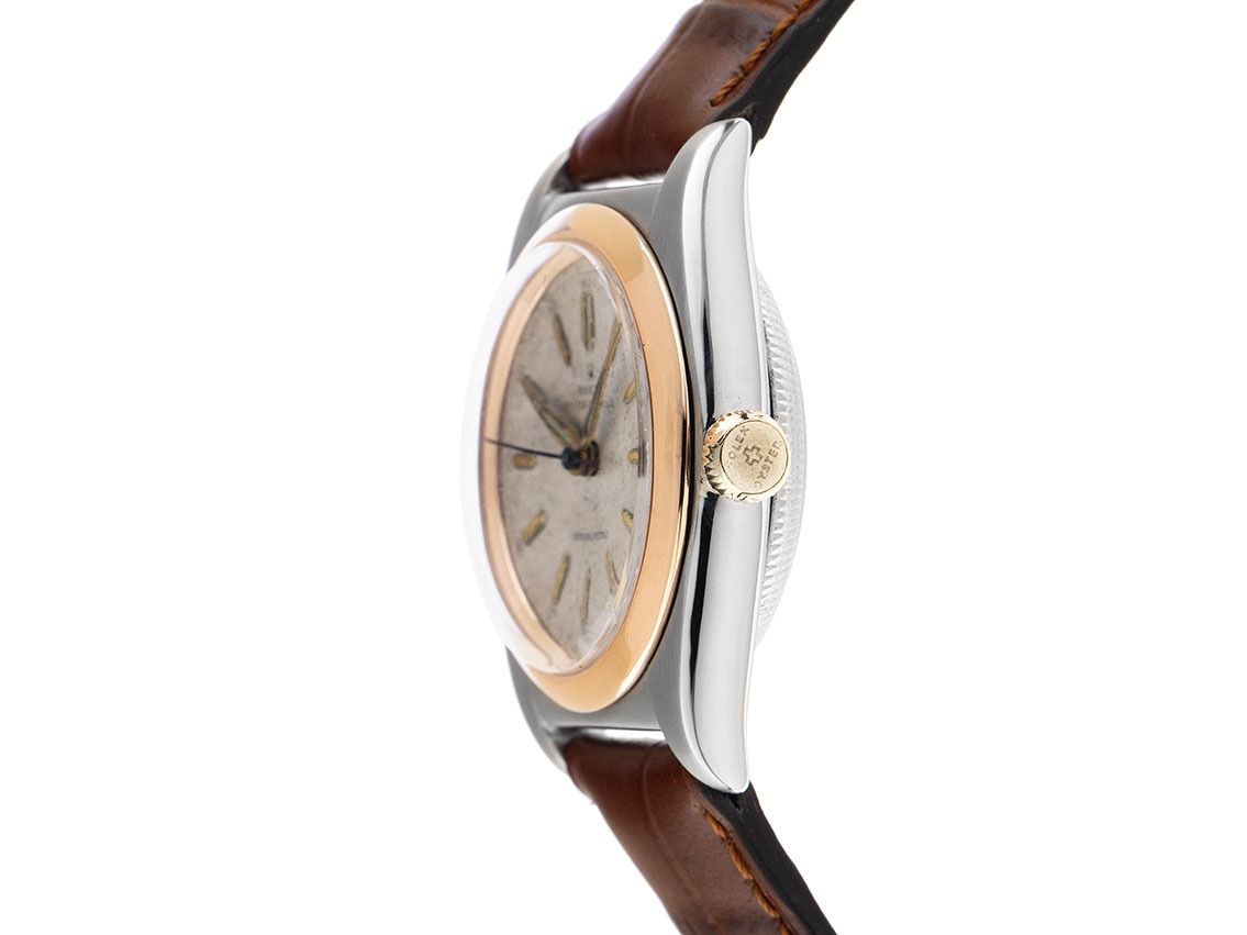 Rolex Oyster Perpetual Bubble Back Chronometer Aço Roségold Automático Pulseira de Couro