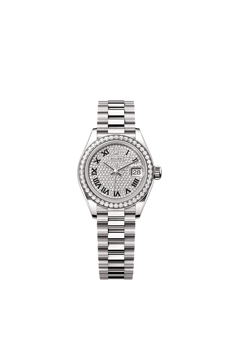 Rolex 279139RBR-0014 Lady-Datejust 28 White Gold - Diamond / President / Paved - Roman