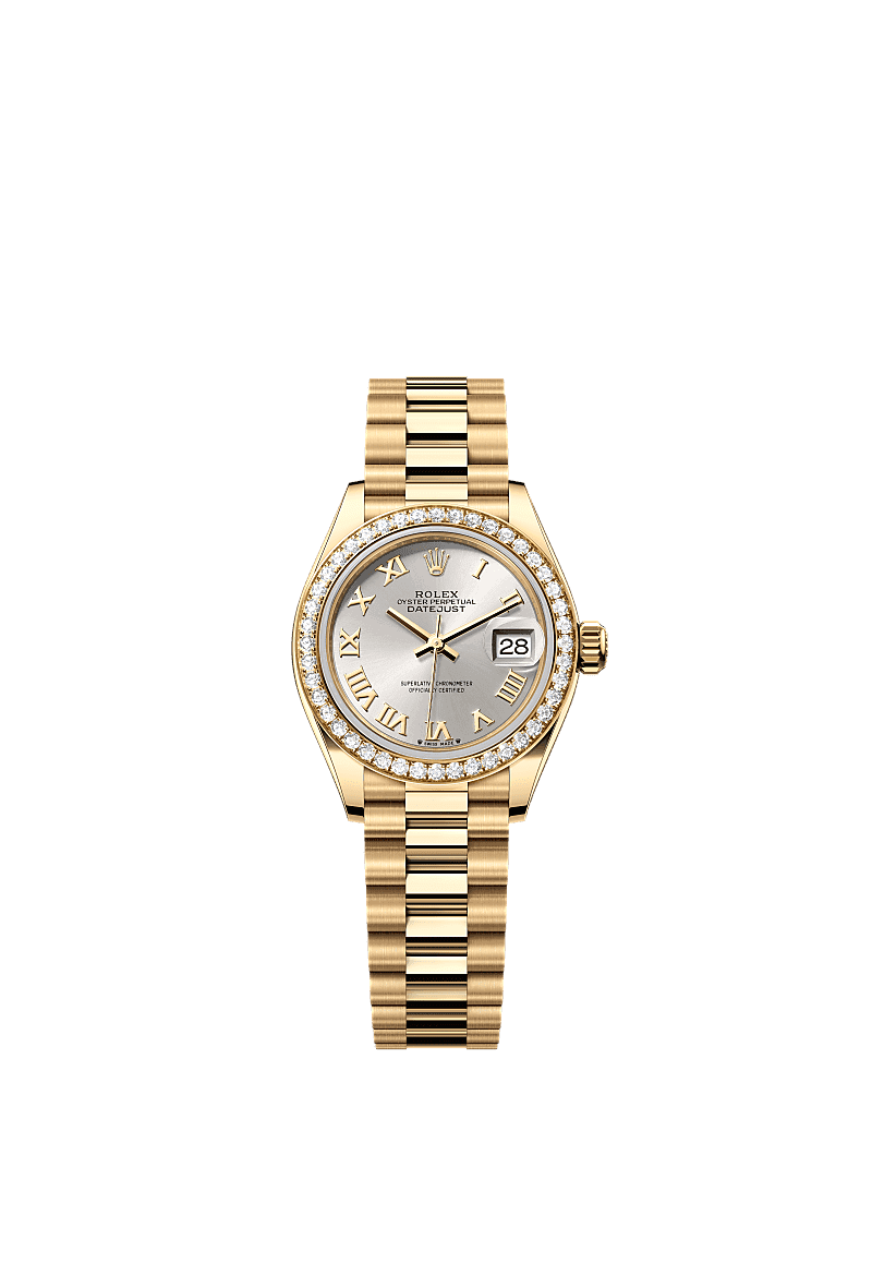 Rolex Lady-Datejust Rolex 279138RBR-0017 - Lady-Datejust 28 Yellow Gold Diamond / President / Silver Roman
