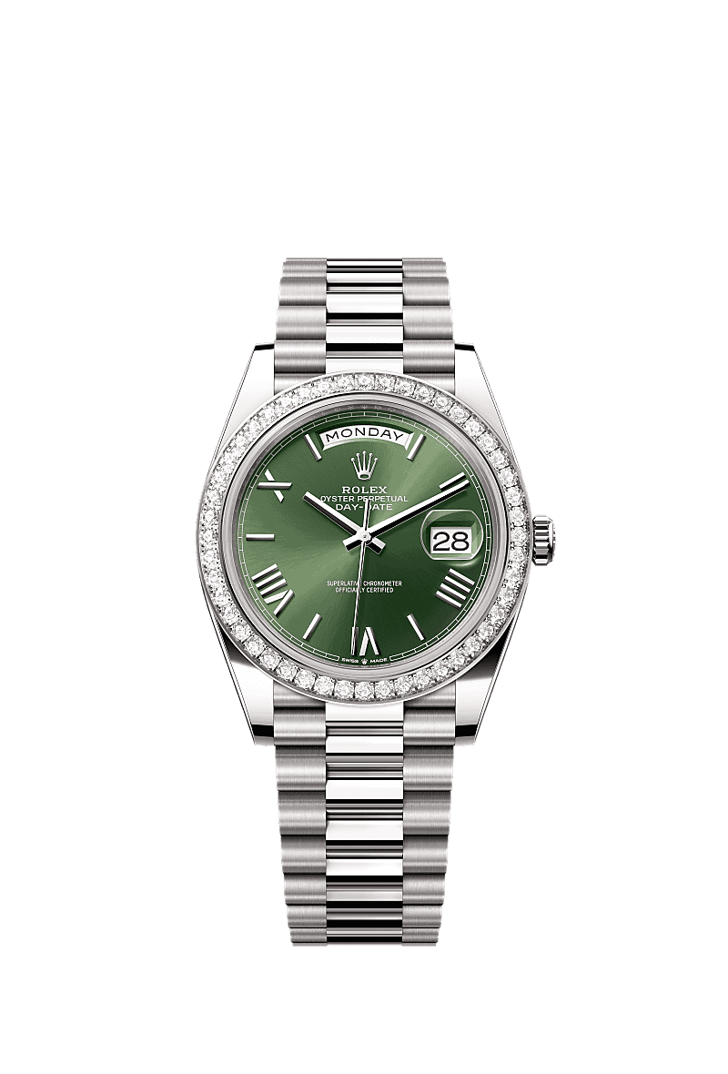 Rolex 228349RBR-0030 - Day-Date 40 Ouro Branco / Diamante / Verde Romano