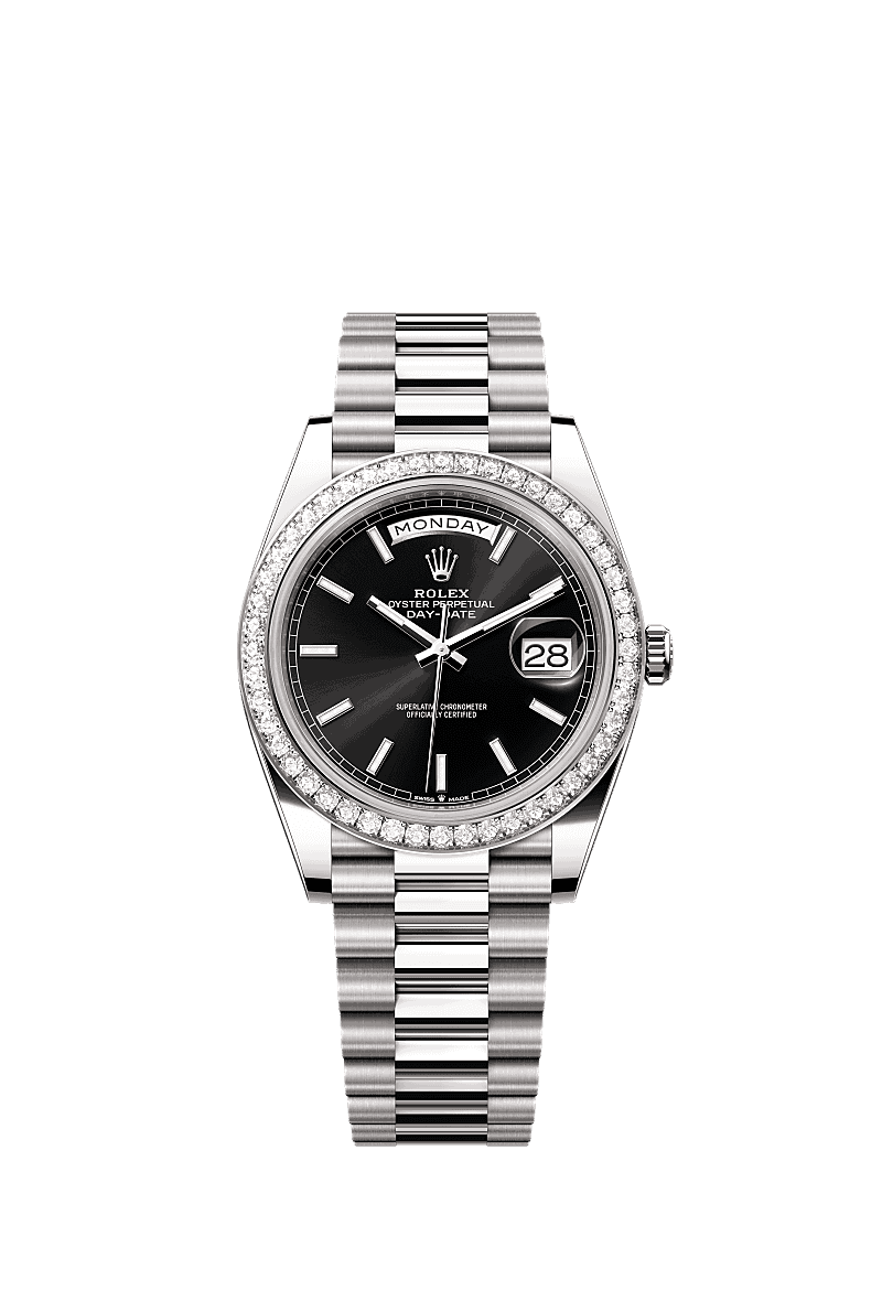 Rolex 228349RBR-0002 - Day-Date 40 Ouro Branco / Diamante / Preto