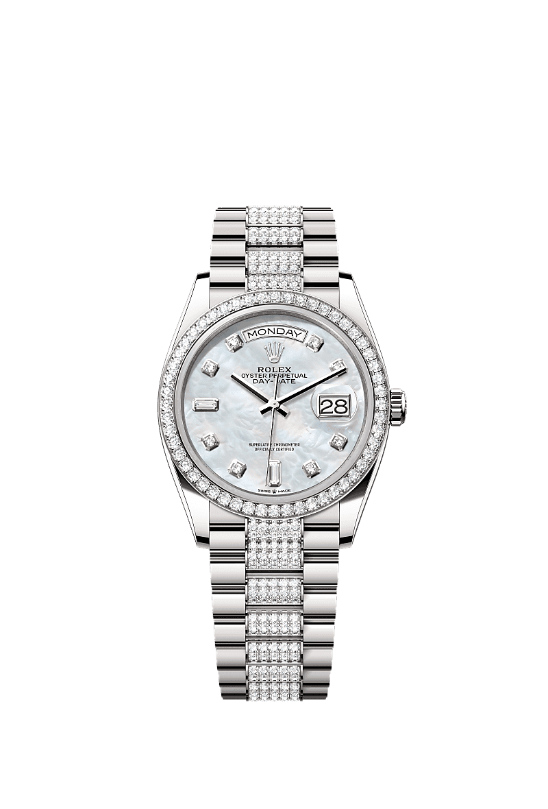 Rolex Day-Date 36 Rolex 128349RBR-0014 Day-Date 36 White Gold / Diamond / MOP-Diamond / President-Diamond