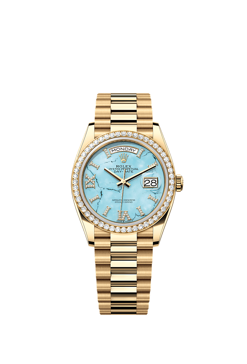 Rolex 128348RBR-0037 Day-Date 36 Ouro Amarelo / Diamante / Turquesa / Presidente