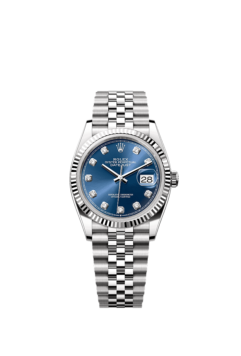 Rolex 126234-0037 Datejust 36 Aço Inoxidável / Fluted / Azul com Diamantes / Jubilee