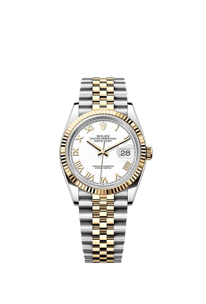 Rolex 126233-0029 Datejust 36 Stainless Steel / Yellow Gold / Fluted / White Roman / Jubilee