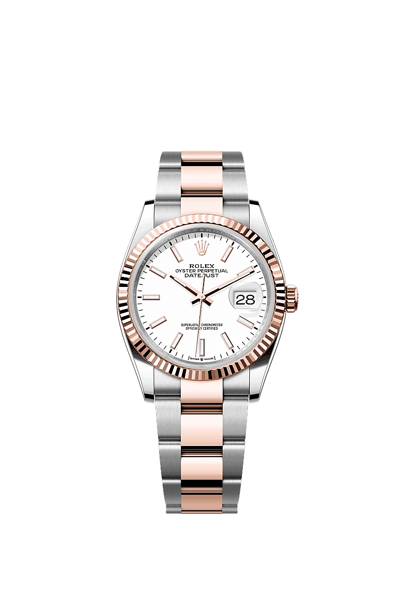 Rolex 126231-0018 Datejust 36 Stainless Steel / Everose / Fluted / White / Oyster