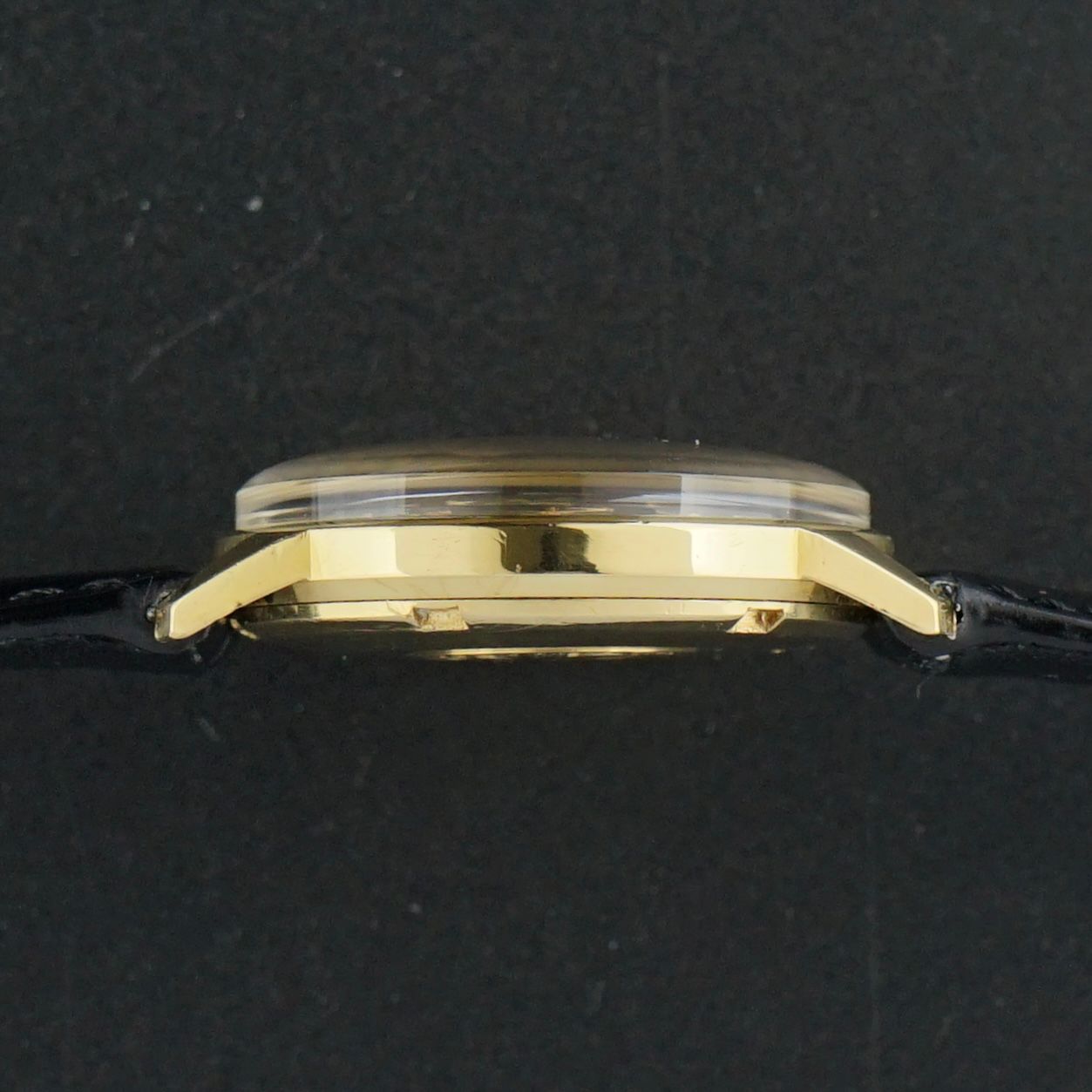 Dentro dele, está o movimento automático Calibre 562, revisado em fevereiro de 2026, agora funcionando e operando perfeitamente. A caixa de 34mm é feita de ouro amarelo sólido de 18 quilates e possui aproximadamente 26 gramas em valor de ouro, representando cerca de €2500 em fevereiro de 2026.